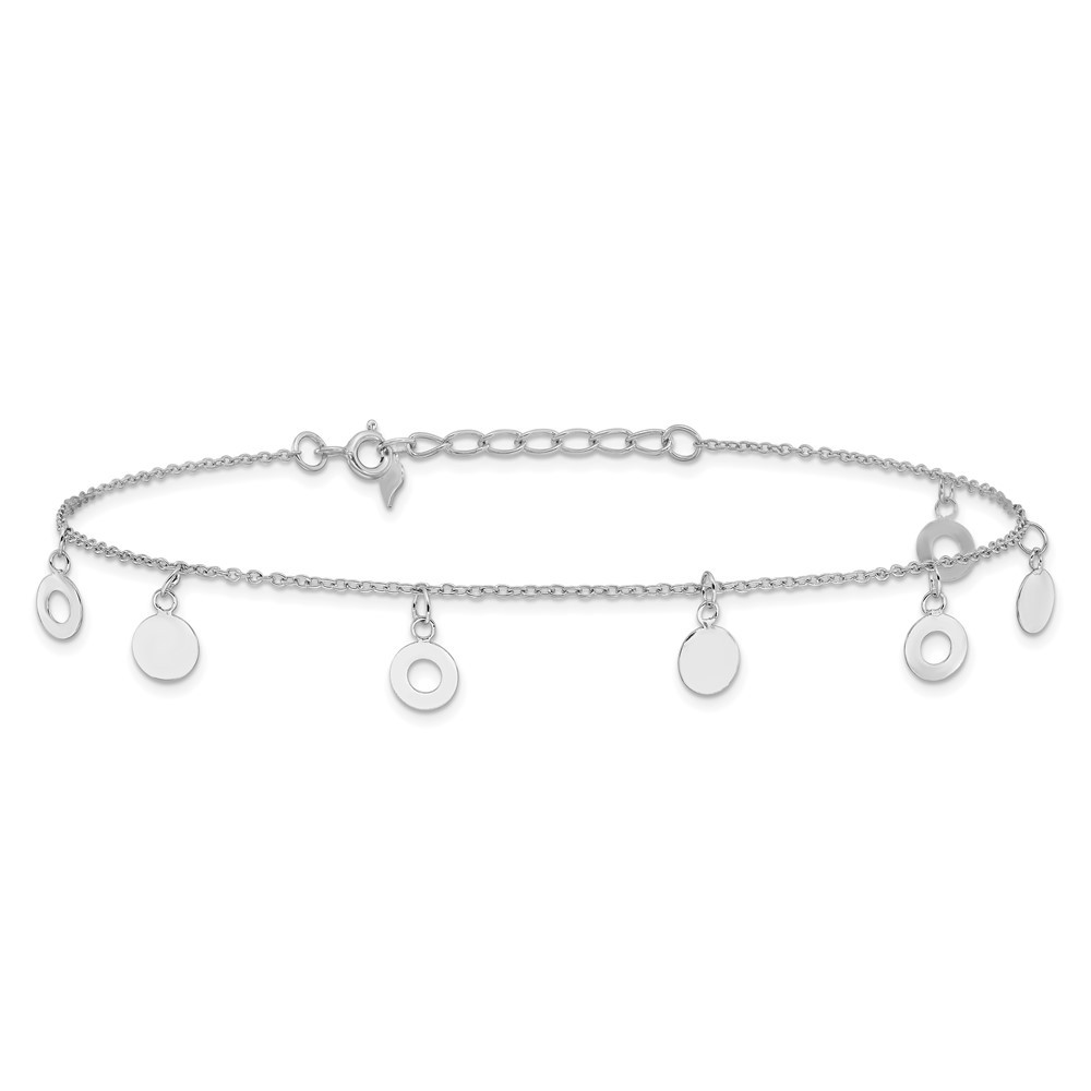$ 50.69925 Silver Gold-Tone Open Heart Anklet 10 Inch 2.16g Rhodium Plated