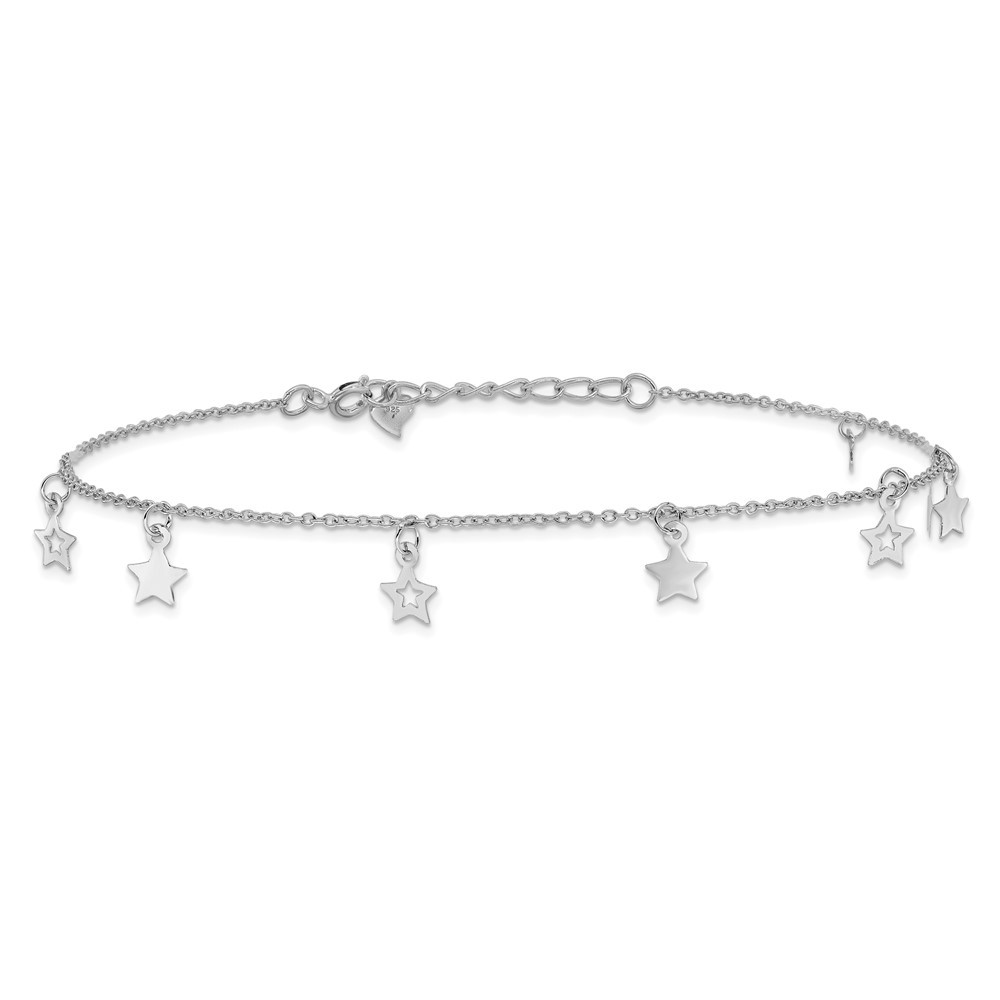 $ 44.35925 Sterling Silver Rhodium Anklet 9in w/Extender 2.19g Polished Finish