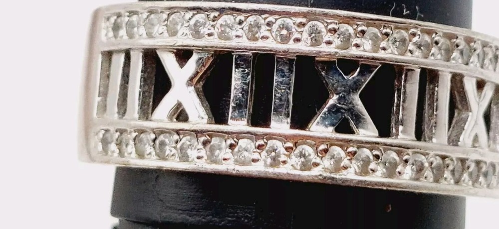 Sterling Silver Roman Numeral CZ Accent Band Ring Size 10 925