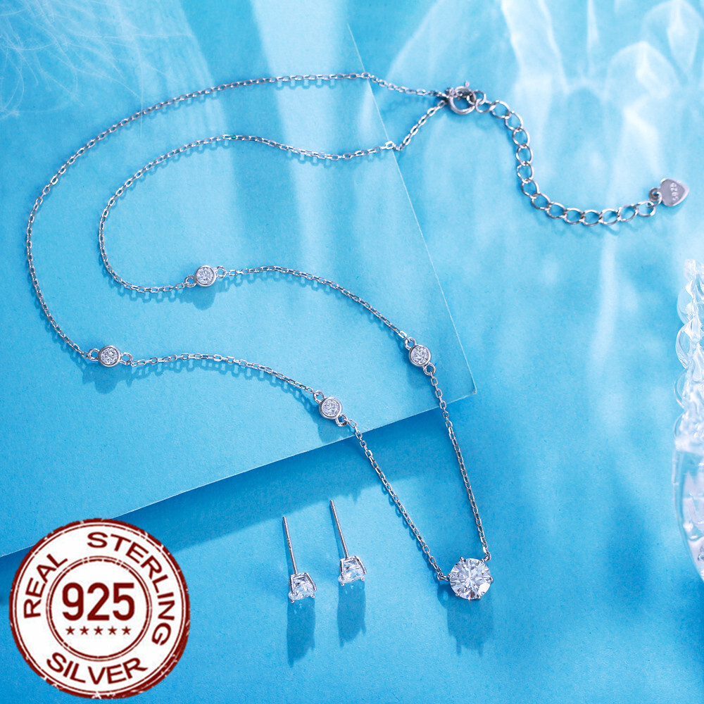 Round Cubic Zirconia Chain Necklace and Stud Earring Sterling Silver Jewelry Set There’s an old saying that: Jewelry is woman’s best friend. And one appropriate luxury jewelry helps to spice up your charm and beauty. And here’s the reason why you choose us: ★ We adopts high-grade Cubic Zirconia, which displays pure and fascinating color; ★ All our items are Elaborate, the texture is smooth and with fancy look, and will be appropriate for so many occasions; ★ Our items are with Exquisite Design, which shows your excellent taste, and could catch people’s attention easily. ★ Ideal gift for mother, wife, girlfriend, daughters, brides, bridesmaids, ect. Specification Type: 925 Sterling Silver Jewelry Set Stone Material: Cubic Zirconia Base Metal Material: 925 Silver Metal Material: 925 Sterling Silver Shape: Small Round Color: White Suitable Occasion: Daily, Holidays, Party, Engagement, Wedding, Anniversary, Valentine’s Day, Carnival, Performance, ect. Package Includes 1 Pair of CZ Stud Earrings 1 Piece of CZ Necklace Please note: *Please bear in mind that there might be 1~2cm difference due to manual measurement. *Our digital images are as accurate as possible. However, different monitors may cause colors to vary slightly. *We offer after-sale service, if there is any item problem, please feel free to contact us via eBay message first, your kind understanding is much appreciated. About Us Payment Shipping Returns Contact us About Us Topjewel33 is a newly-established online store which dedicates to provide excellent luxury jewelry products, such as earrings, rings, necklaces, bracelets, brooches, hair accessories, and high grade jewelry sets. We target worldwide market, and we strive for offering you unbeatable low price and satisfied customer service. Payment We accept PayPal payment only. Payment must be received within 7 days from the date of purchase. Shipping We do hope all our customers could receive the order asap, so normally, the order will be sent out within 2 working days. And as the delivery is handled by the third party, sorry that we could not guarantee which date you could receive the package. And sometimes the delivery might be a little bit delay, especially in high volume or holiday seasons. However, please don’t worry and feel free to contact us via eBay message, and we will do our best to help. And we sincerely apologize for any inconvenience may cause. Sometimes custom tax might be required, and we are afraid that it will be covered by the buyers, thank you for kind understanding. Returns We provide 30 days money back return policy. And if you have any problem with the item, please make sure the item is in the original package and feel free to contact us via eBay message first, thank you for kind understanding and cooperation. Contact us We offer customer service, if you have any problem with the item before/during/after the purchase, please feel free to contact us via eBay message, and we will get back to you asap. Thank you for your kind patience.
