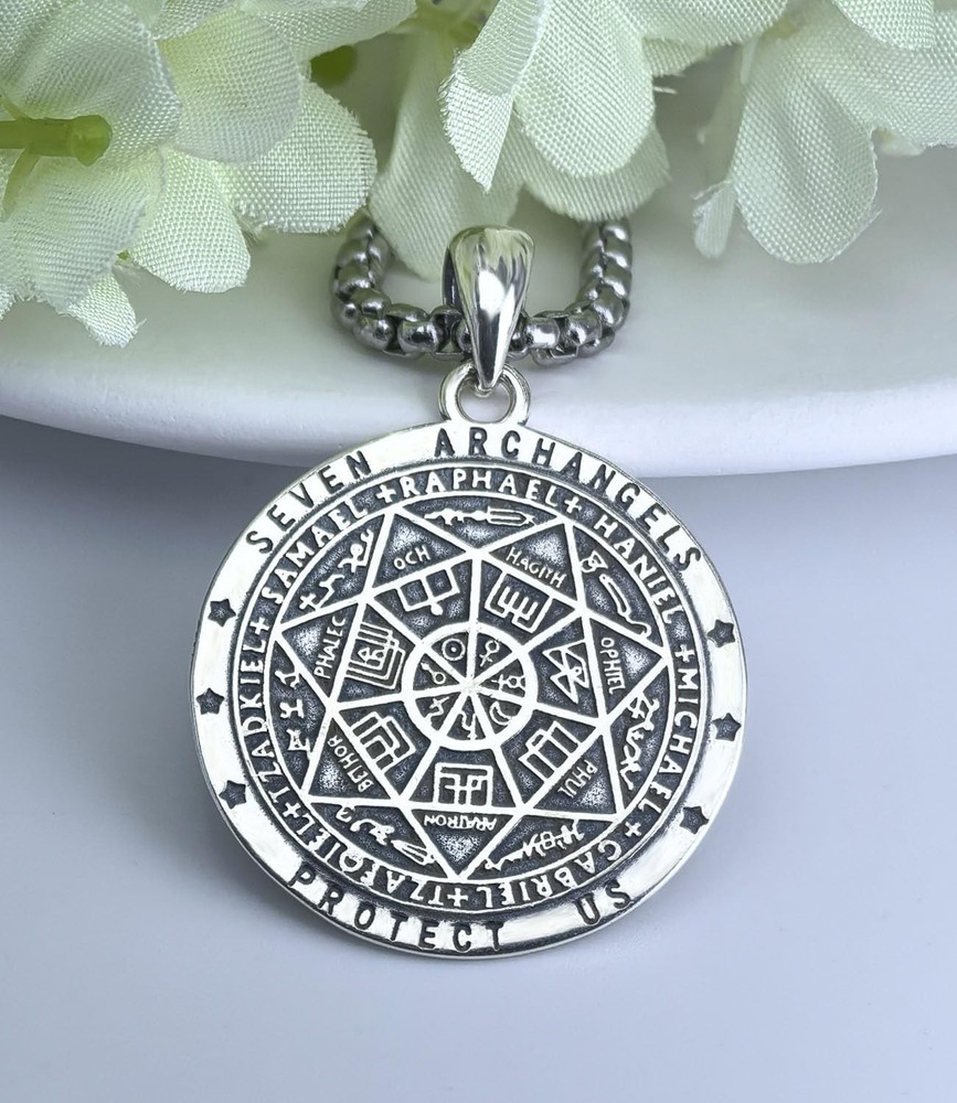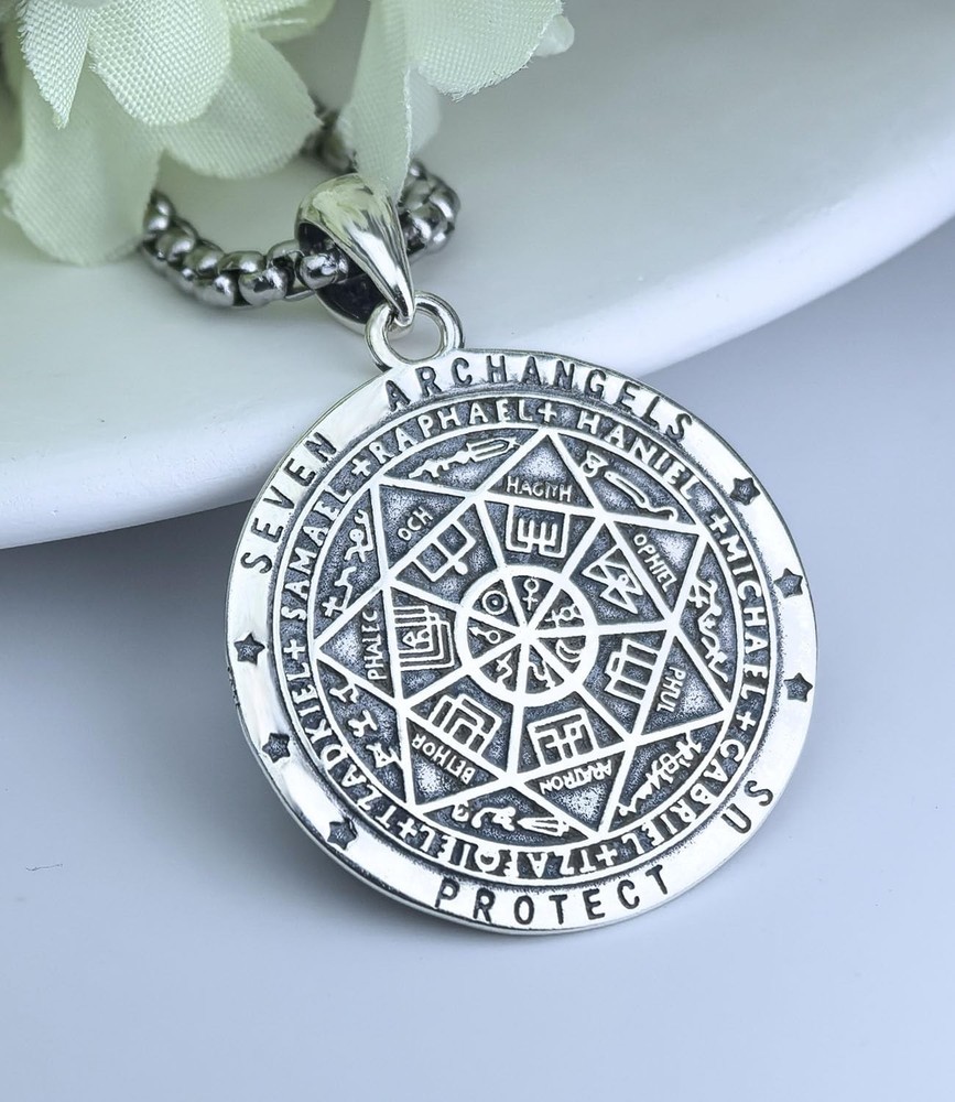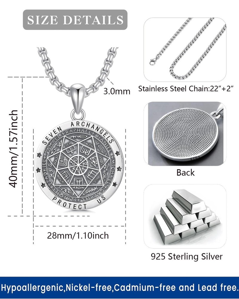 ❤The Seal of Seven Archangels - The Seven Archangels Amulet necklace protects us from evil, jealousy, and negative energy. The seven archangels are Michael, Gabriel, Raphael, Tzafqiel, Tzadkiel, Samael and Haniel. Whether you're seeking protection, guidance, or spiritual assistance, this powerful amulet will help you connect with the archangels and access their divine powers. ❤Material - Seven Archangels pendants are made of S925 Sterling Silver, stainless steel 3MM chain, giving the necklace a brilliant appearance and excellent texture, as well as durability and long-term value preservation. ❤Measurements - The Seven Archangels pendant size is 29*29mm(1.14*1.14 inch), 3.0 mm Box Chain Length: 22"+2" extender. ❤Meaningful Gifts - The seal of the seven archangels represents divine protection and guardianship, allowing the wearer to connect with the power of protection and balance. It serves as a reminder to seek inner balance in daily life and to remain steadfast and courageous in the face of challenges. It can also be given as a gift or souvenir to express blessings and good luck. ❤Customer Service - Jewelry is committed to providing the best jewelry and services to our customers. If you have any questions, please let us know and we will solve them for you.