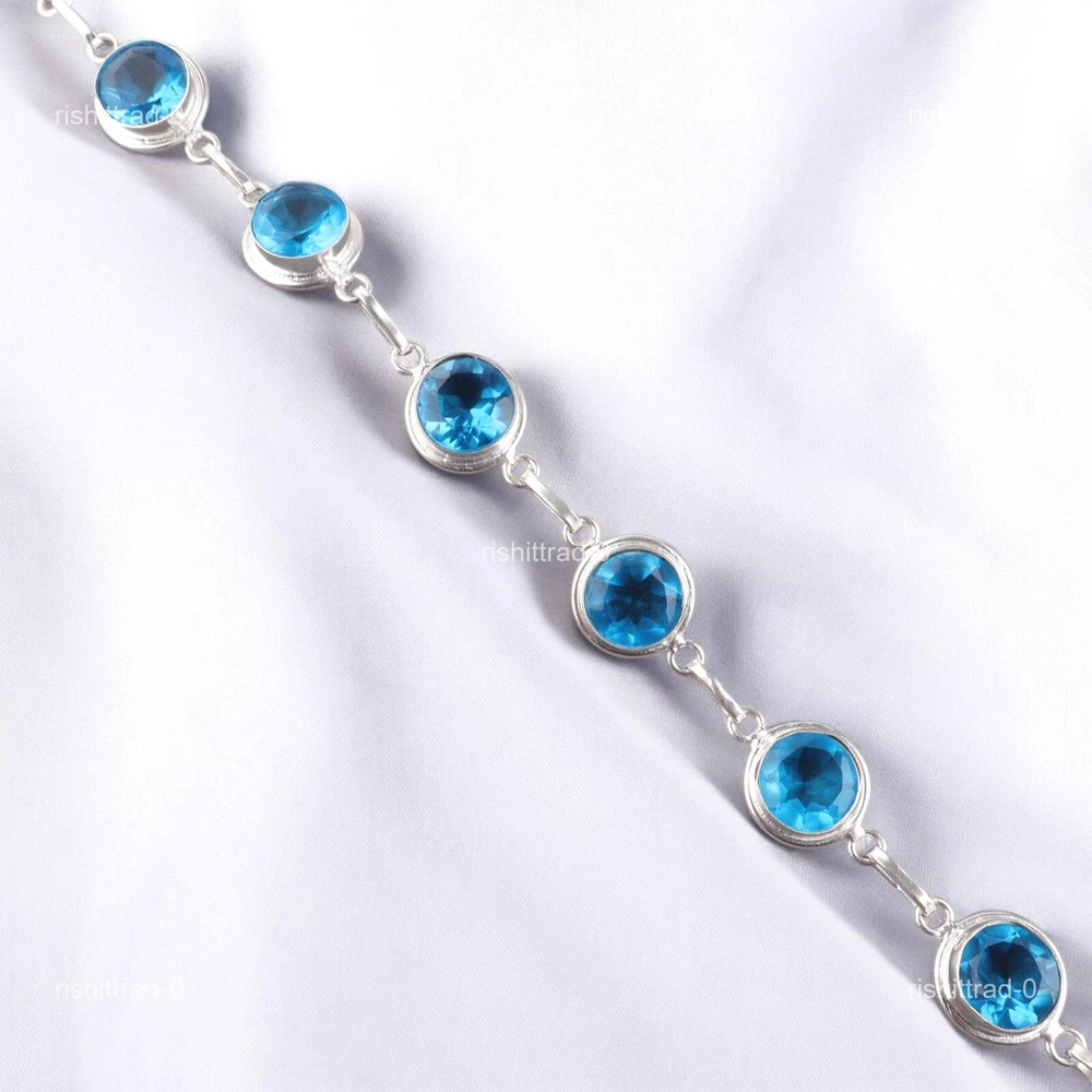 Dive into the magical temptation of this stunning Bracelet in attractive shape and design made of Sterling Silver studded with Swiss Blue Topaz. An essential ornament to add in your jewellery collection! ---------------------------------------------------- ------------ Welcome to Our Shop Rishittrad ---------------------------------------------------- ------------ Swiss Topaz Gemstone Chain Blue Bracelet 925 Sterling Silver Indian Jewelry Description:- SKU :- RB-13-1 Metal :- Sterling Silver Metal Purity :- 925 Gemstone :- Swiss Blue Topaz Gemstone Color :- Blue Gemstone Shape :- Round Gemstone Origin :- Setting :- Bracelet Length :- 7-9" InchesDive into the magical temptation of this stunning Bracelet in attractive shape and design made of Sterling Silver studded with Swiss Blue Topaz. An essential ornament to add in your jewellery collection! Bracelet Width :- InchesDive into the magical temptation of this stunning Bracelet in attractive shape and design made of Sterling Silver studded with Swiss Blue Topaz. An essential ornament to add in your jewellery collection! ---------------------------------------------------- ------------ -------- ------------ Elegant Birthday Tribute:- Discover the essence of sophistication with our Birthday Radiance collection. Crafted with exquisite attention to detail, each piece embodies the timeless elegance and symbolic significance of birthdays. Craftsmanship Excellence:- Meticulously fashioned from premium 925 sterling silver, our jewelry pieces boast a classic and enduring design. The rich tones of natural gemstones complement the silver setting, creating a captivating harmony that resonates with wisdom and truth. Symbol of Personal Growth:- Gift with intention and meaning. Our Emblem of Wisdom pieces symbolize heartfelt wishes for personal growth and enlightenment on the recipient's special day, making it a cherished gesture of love and appreciation. Versatile Elegance:- Measuring at 1.2 inches, our creations seamlessly blend into any ensemble, offering both daily wearability and the ability to elevate sophisticated looks for special occasions. Their adaptable design ensures they become treasured additions to any jewelry collection. Thoughtful Expression of Love:- Surprise your beloved with a gift that transcends mere adornment. Our Natural Gemstone 925 Sterling Silver collection is a stylish and thoughtful token, exuding elegance and emotion while conveying warmest wishes with enduring grace. Exquisite Presentation:- Delight in the joy of gifting with our meticulously presented pieces, elegantly housed in an exquisite gift box. Make their birthday truly memorable by presenting them with a gift that captures the allure and timeless elegance of sterling silver. -------------------------- Image Policy----------------------------- All images are captured in natural lighting. The product showcased is the exact item you'll receive. -------------------------- Delivery Policy-------------------------- Standard Shipping typically takes 15-25 days, depending on your location. For expedited shipping, additional charges will apply. --------------------------- Product Policy--------------------------- You will receive the exact product depicted in the photos. All items are meticulously handcrafted. ------------------------------ Order Policy------------------------------ We welcome orders from around the globe. Custom orders are also accepted. Bulk orders are available upon request. Should you have any queries about our products, please don't hesitate to reach out. Upon receiving your product, we'd appreciate your feedback. ⋆⋆✦✧✦⋆⋆⋆⋆✦✧✦⋆⋆⋆⋆✦✧✦⋆⋆⋆⋆✦✧✦⋆⋆⋆⋆✦✧✦⋆⋆⋆⋆✦✧✦⋆⋆⋆⋆✦✧✦⋆⋆ "Discover a captivating collection of handcrafted gemstone jewelry at our boutique." https://www.ebay.com/str/rishittrad0 ♥ Thank you for choosing us ♥