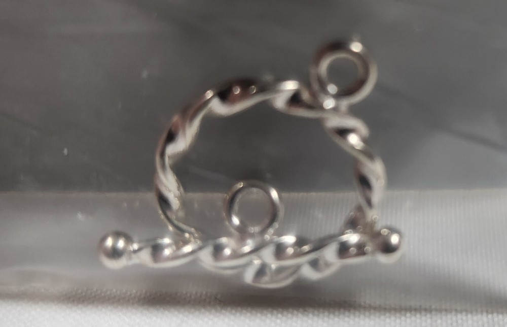 This straight from the jeweler's bench! This sterling silver toggle clasp is a game-changer—smooth, sturdy, and effortlessly upgrades any handmade piece. The twisted detail gives it a luxe artisan feel, and it holds blindly easy. No fuss, just flawless function and style. A must-have for crafters who want pro-quality finishes!