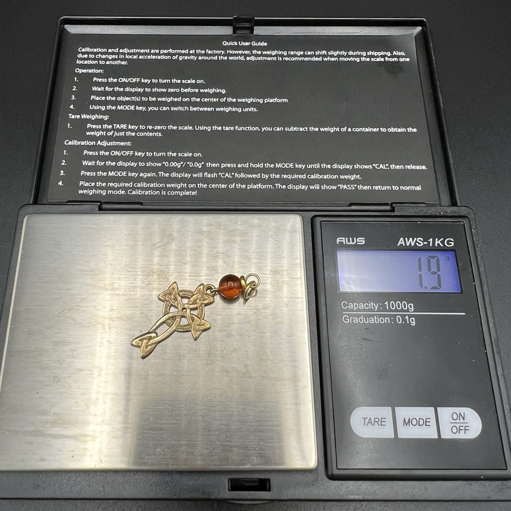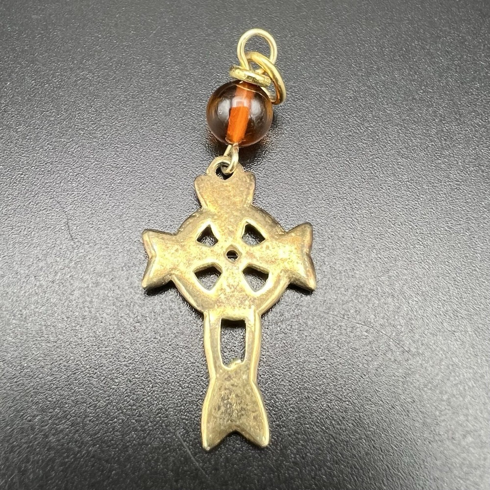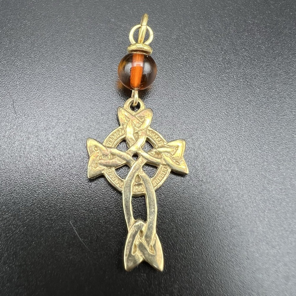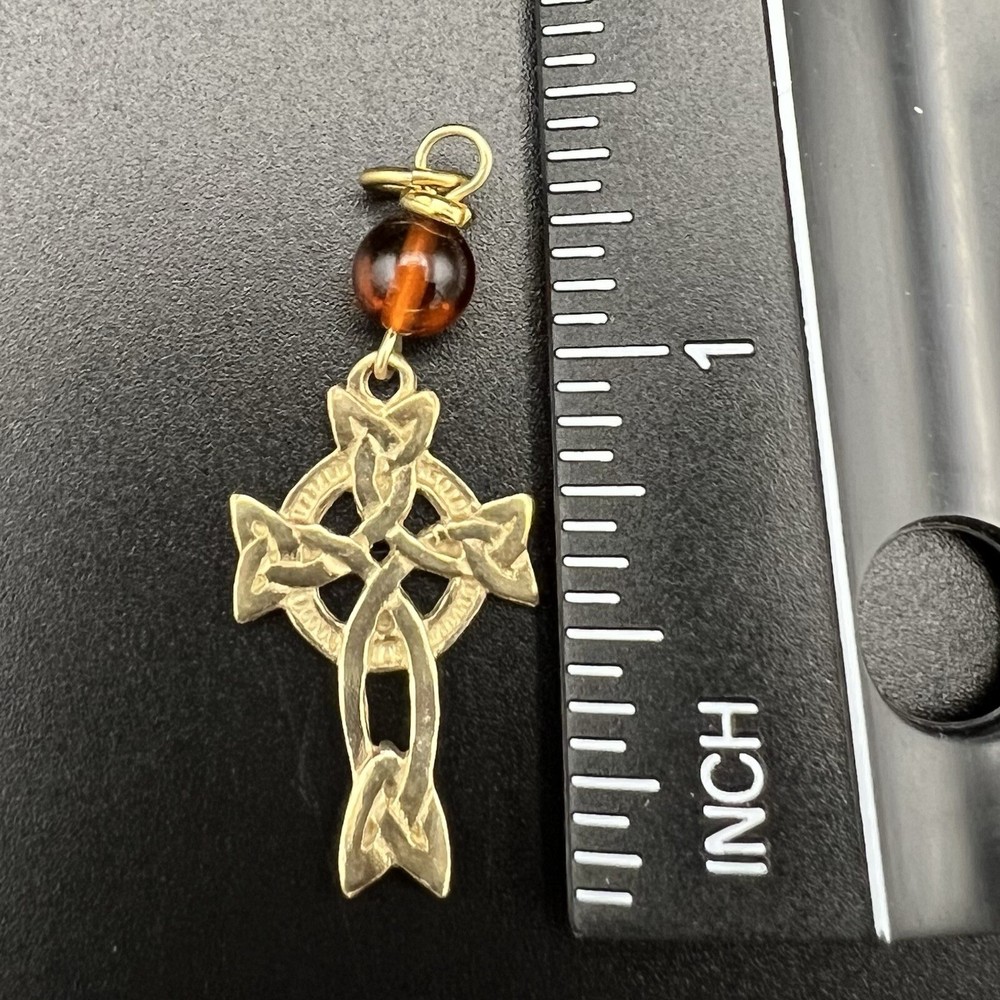 Sterling Vermeil Gold Celtic Cross Pendant with Citrine Bead 1.9g