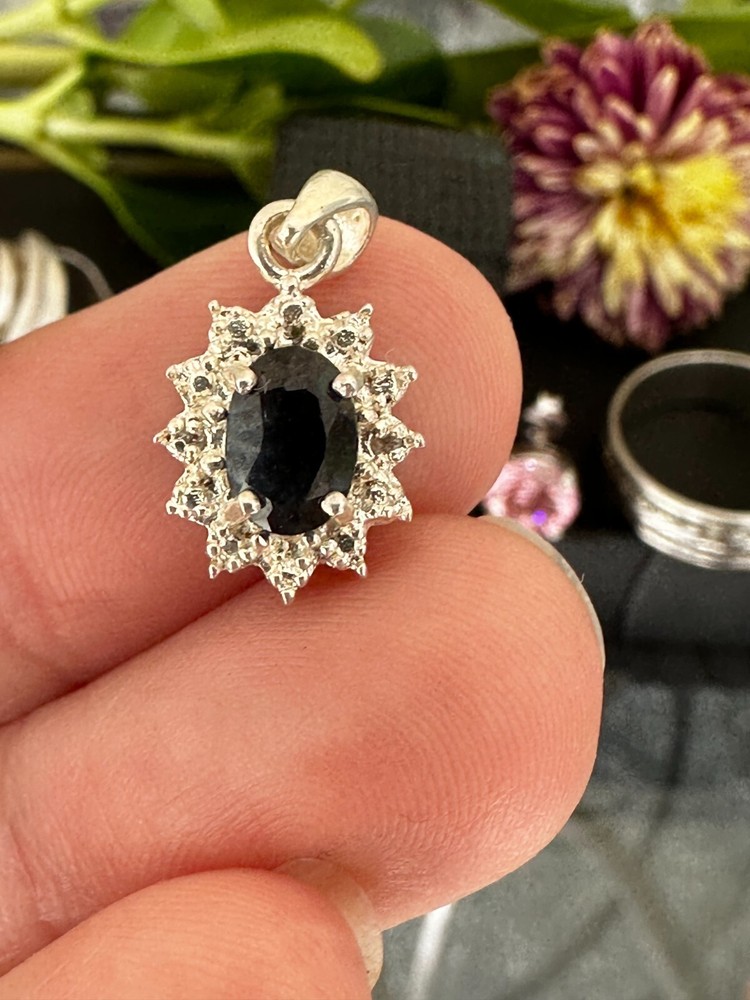 Sterling Silver and stone 6 Piece Assorted Lot of Jewelry Pre Owned Sold as is and all items included in sale 925 and Purple stone earring 925 Sweet 16 Charm/Pendant 925 Dark Blue/Black Stone (this may be a sapphire) 925 and Pink Stone (this may be a pink sapphire or topaz Post earring and push back backing 925 10 1/2 High Polish and design ring 925 Gold tone with diamond cut design Pearl charm/pendant Approx: 16.9 total gram weight I do have other Sterling Silver jewelry as well as 18K, 14K, 10K , Vermeil & gold filled that are New with Tag, Preowned, Vintage, Early Vintage and a few Antique listed if interested. Thank You For Visiting. I ship out same day. All questions encouraged & additional photographs will be sent upon request Please Look at all photo's as all sales are final.