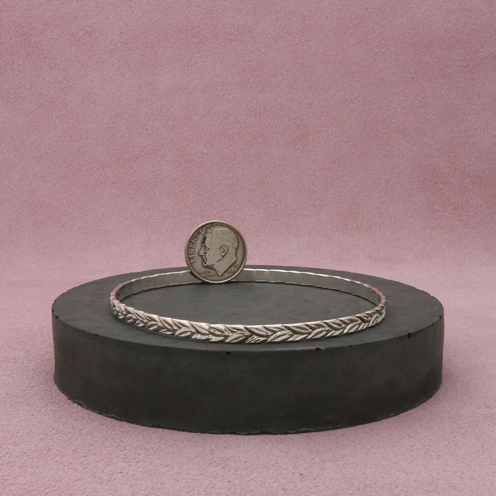 sterling silver vintage leaf pattern stack bangle bracelet size 7.75in Pre-loved but in great condition - Weight - 8.8g Size - 7.75in Width - 4mm Item ID - ABM36600897