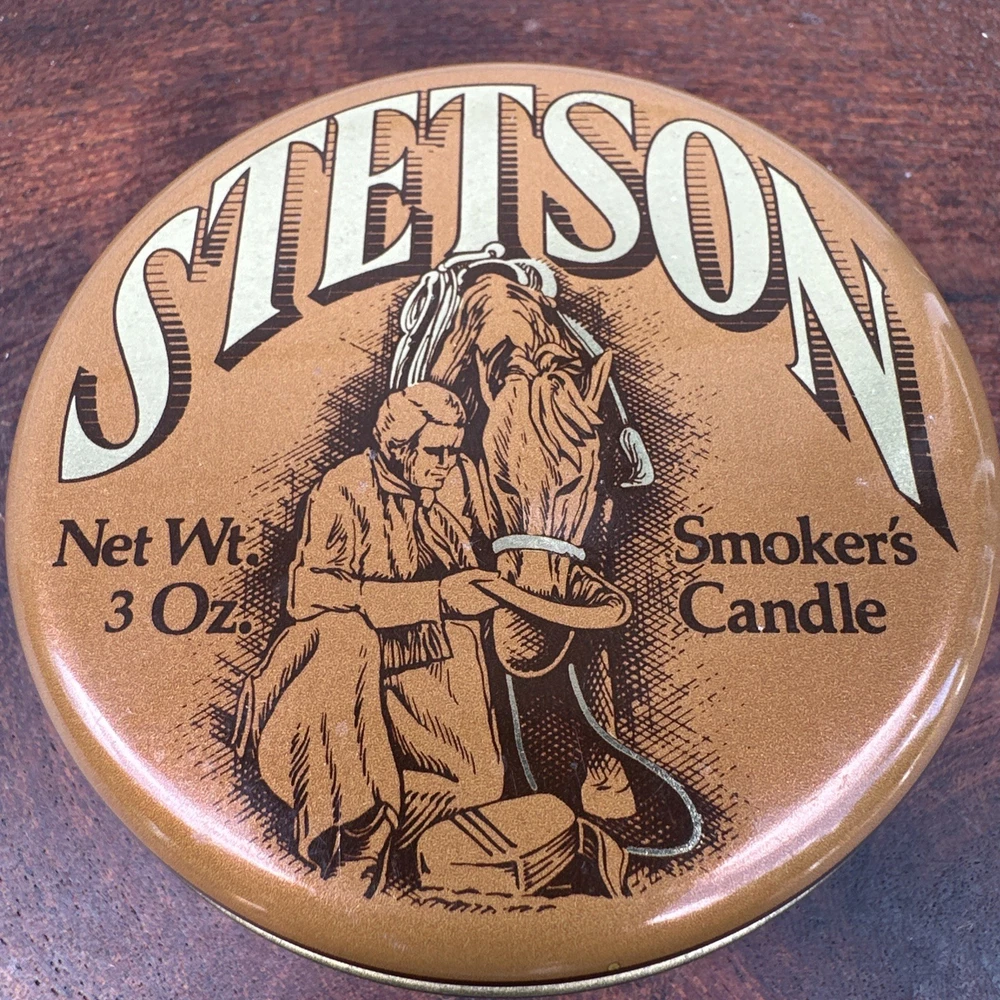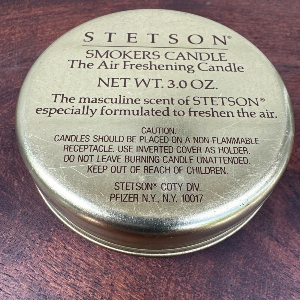 The Stetson Smoker's Air Freshening Candle is a small, round scented candle with a masculine scent inspired by Stetson. The candle is brown in color and comes in a pack of 1, making it perfect for adding a touch of cowboy-themed fragrance to any room. Ideal for those who enjoy the rugged, masculine scent of Stetson, this scented candle is a stylish and functional addition to any home decor. New unused opened container condition. See photos.