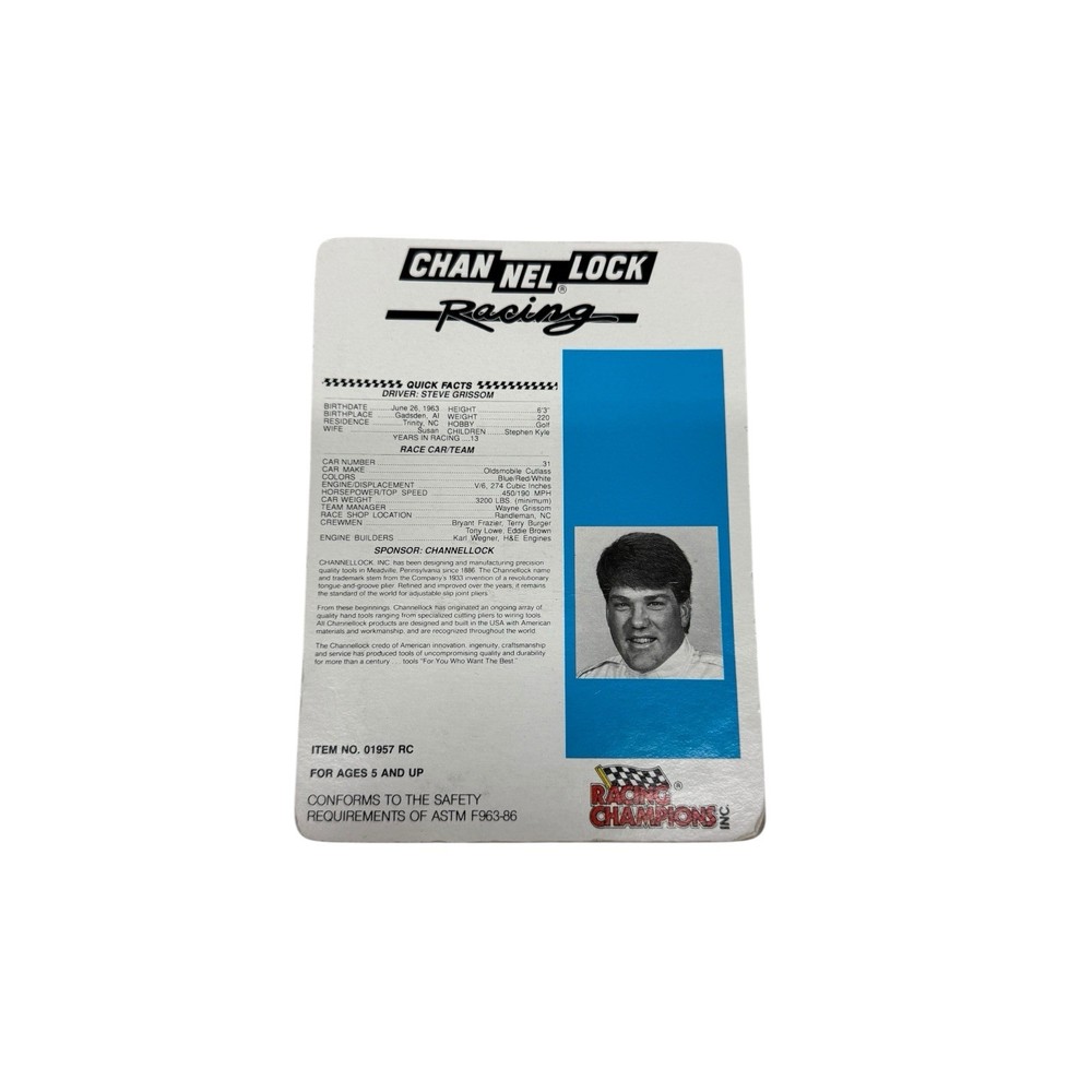 Steve Grissom Racing Champions Diecast 1/64 - Channel Lock Racing - #31. Condition is New. Shipped with USPS Ground Advantage.