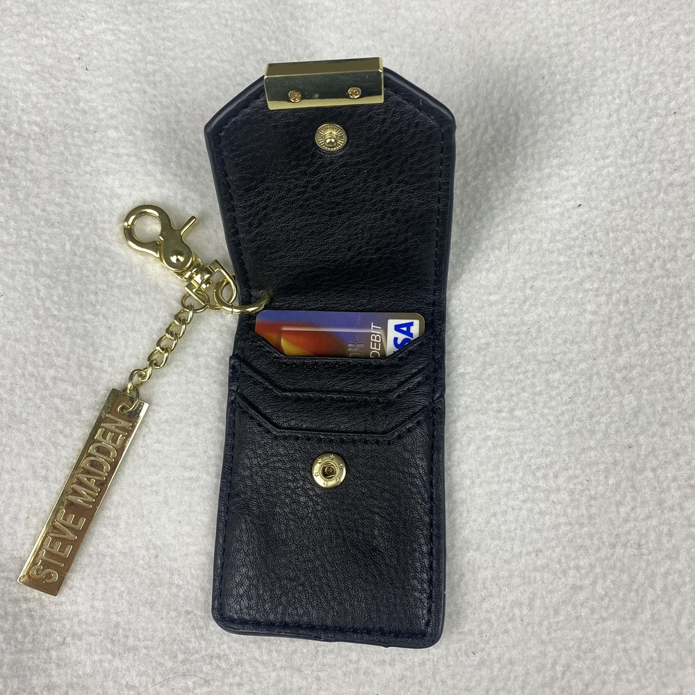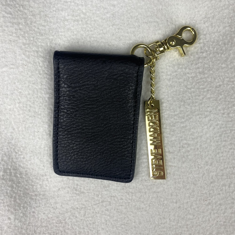 Steve Madden Black Card Holder with Gold Hardware Keychain Bag Charm