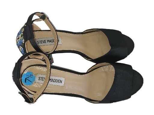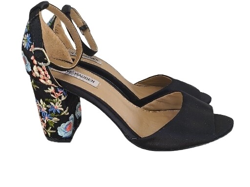 Shoe Width: M EU Shoe Size: 38 Occasion: Casual Pattern: Floral Theme: Floral US Shoe Size: 7.5 Heel Height: High (3-3.9 in) Material: Satin Accents: Embroidered Model: Delilah Outsole Material: Faux Suede Color: Black Character: Steve Heel to Toe Drop: 2 mm Toe Shape: Open Toe California Prop 65 Warning: NA Heel Style: Block Insole Material: Faux Leather Closure: Buckle Country of Origin: China MPN: NA UPC: Does not apply Season: Fall, Spring, Summer Personalize: No Width: M) Department: Women Type: Heel Size: 9.5 Platform Height: 3 in Customized: No Lining Material: Satin Modified Item: No Vintage: No Size Type: Medium Upper Material: satin UK Shoe Size: 5 AU Shoe Size: 6 gtin13: Does not apply Heel Type: Block Product Line: SM Brand: Steve Madden Style: Sandals Year Manufactured: 2010-2019 Features: Ankle Strap