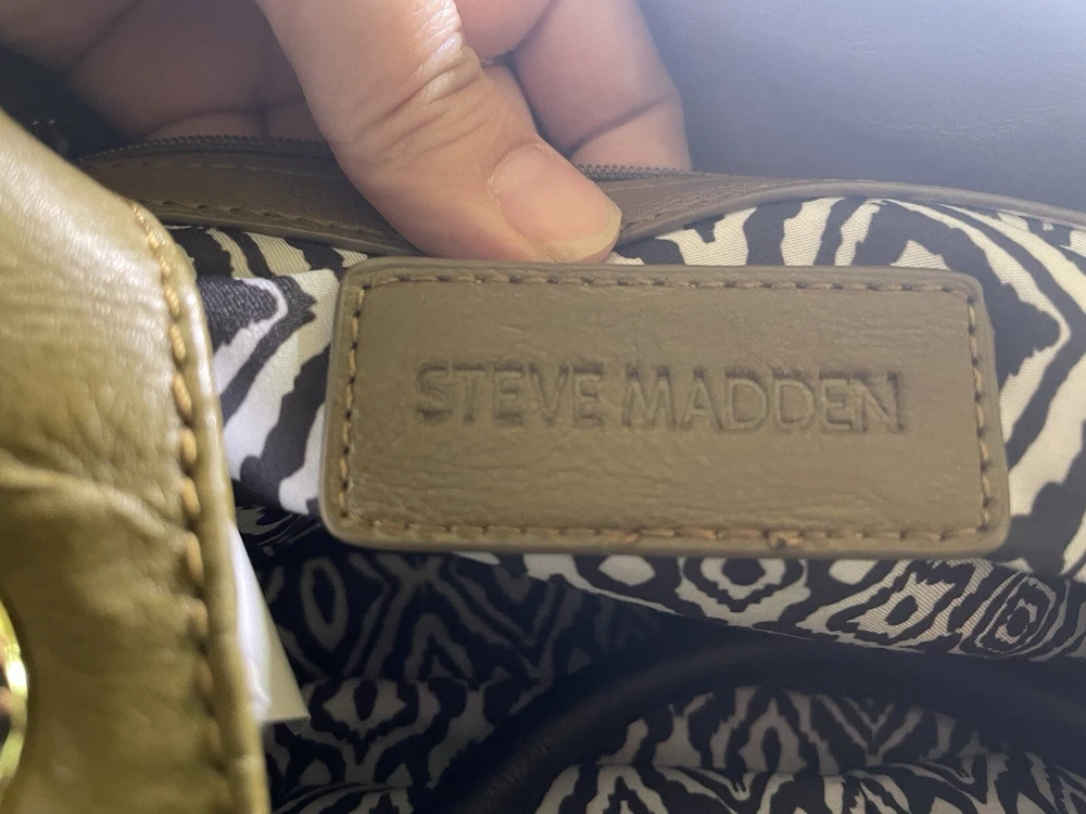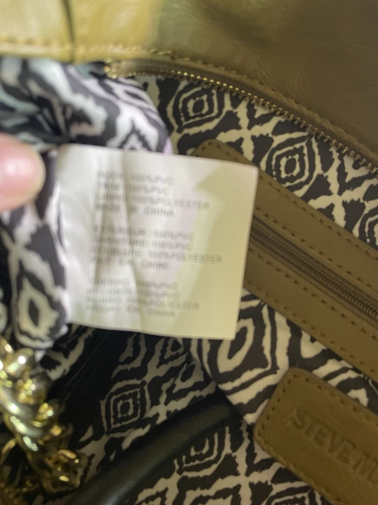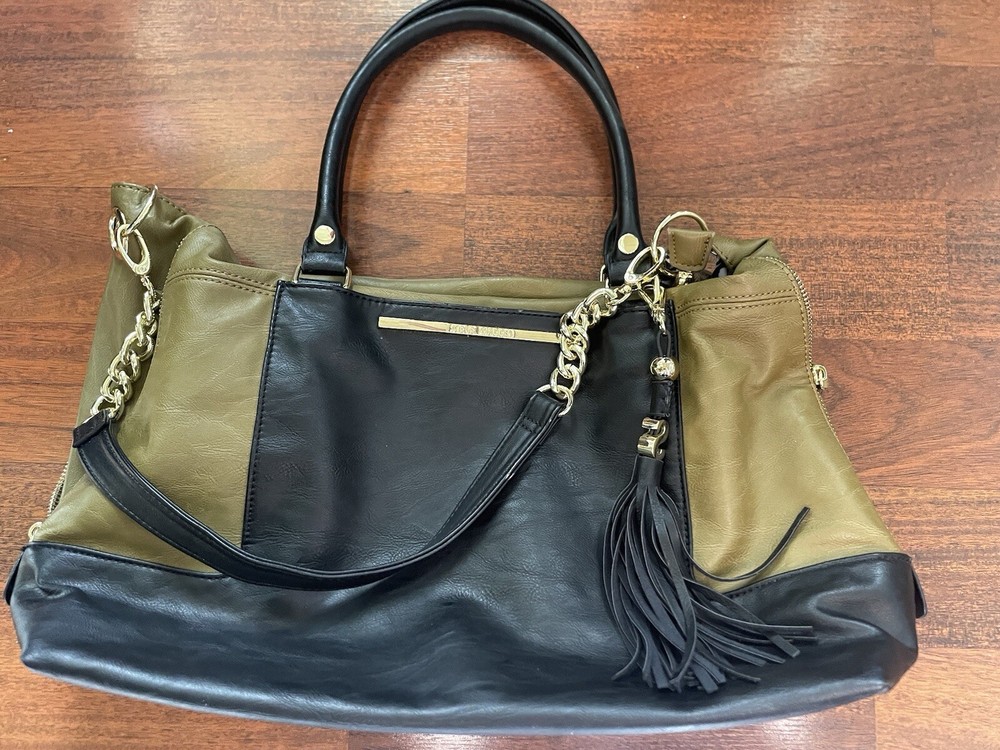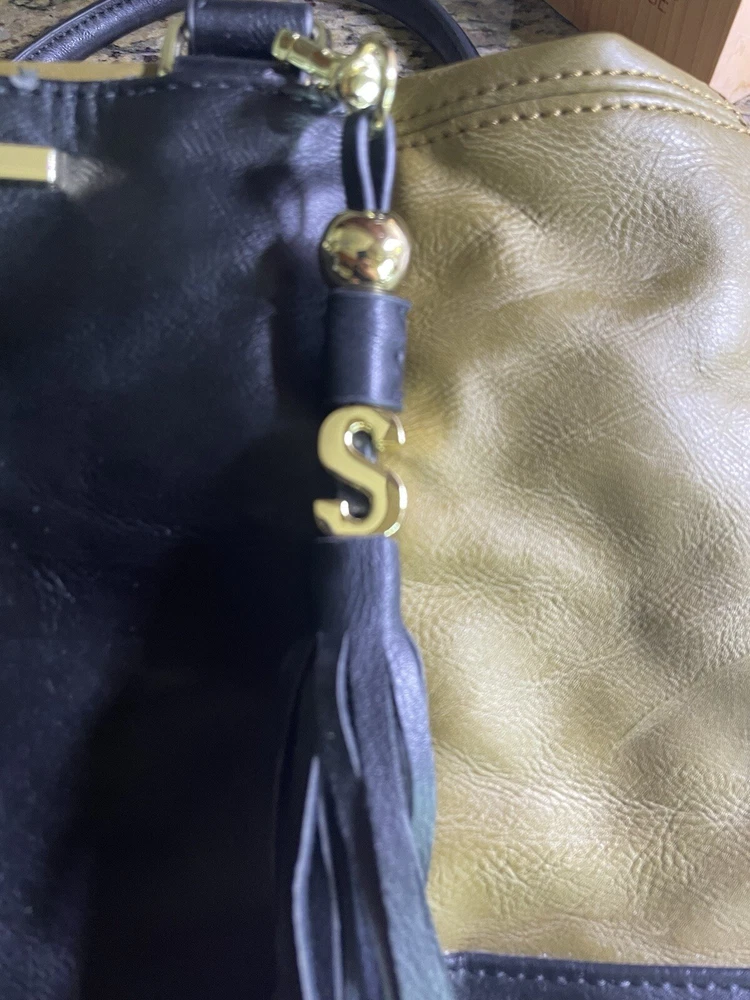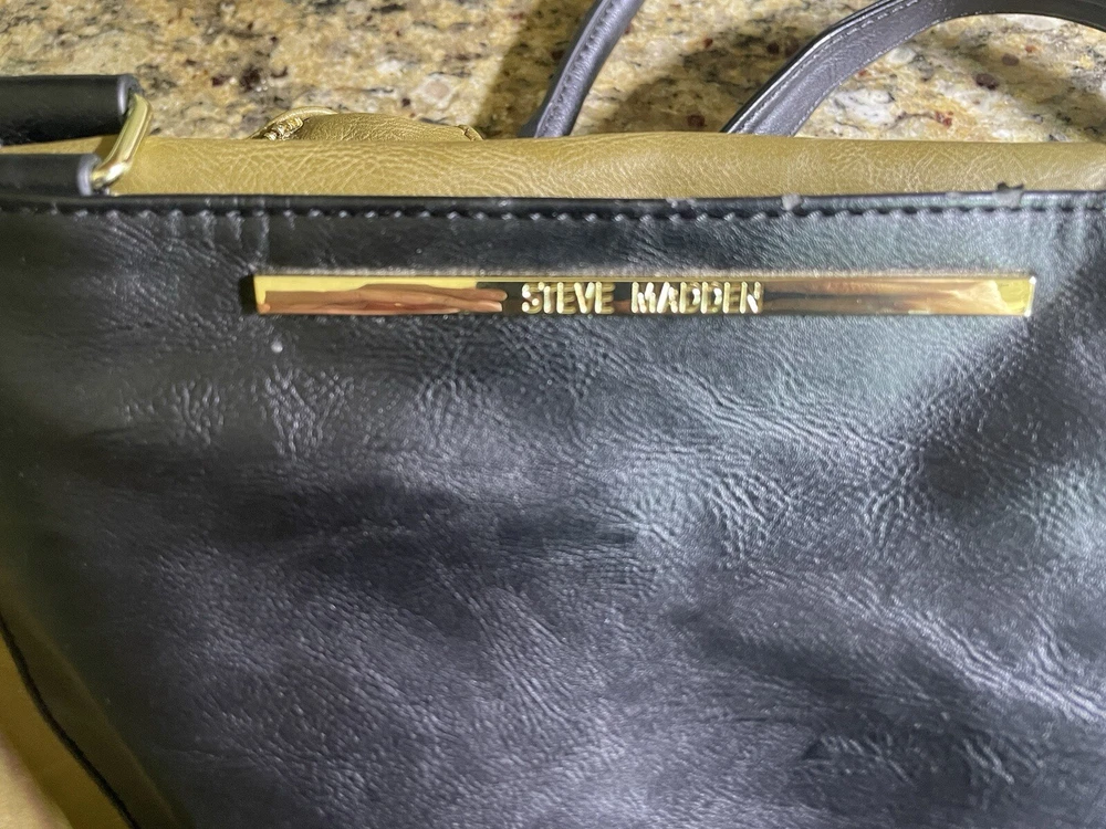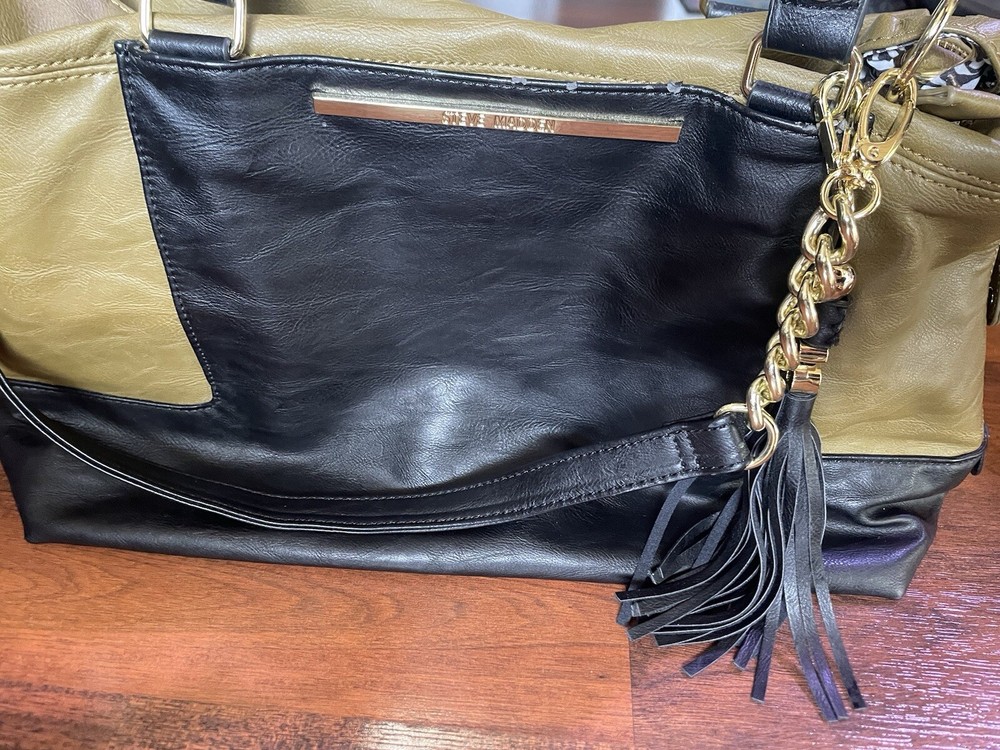 Steve Madden Hobo Shoulder Crossbody Bag Tote Gold/ Black Faux Leather. Condition is Pre-owned. Shipped with USPS Ground Advantage.