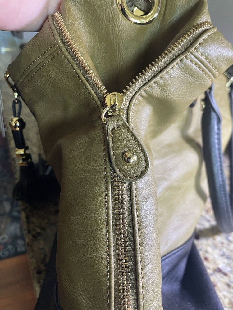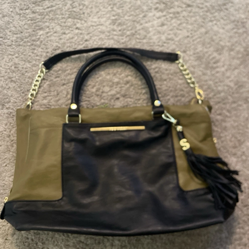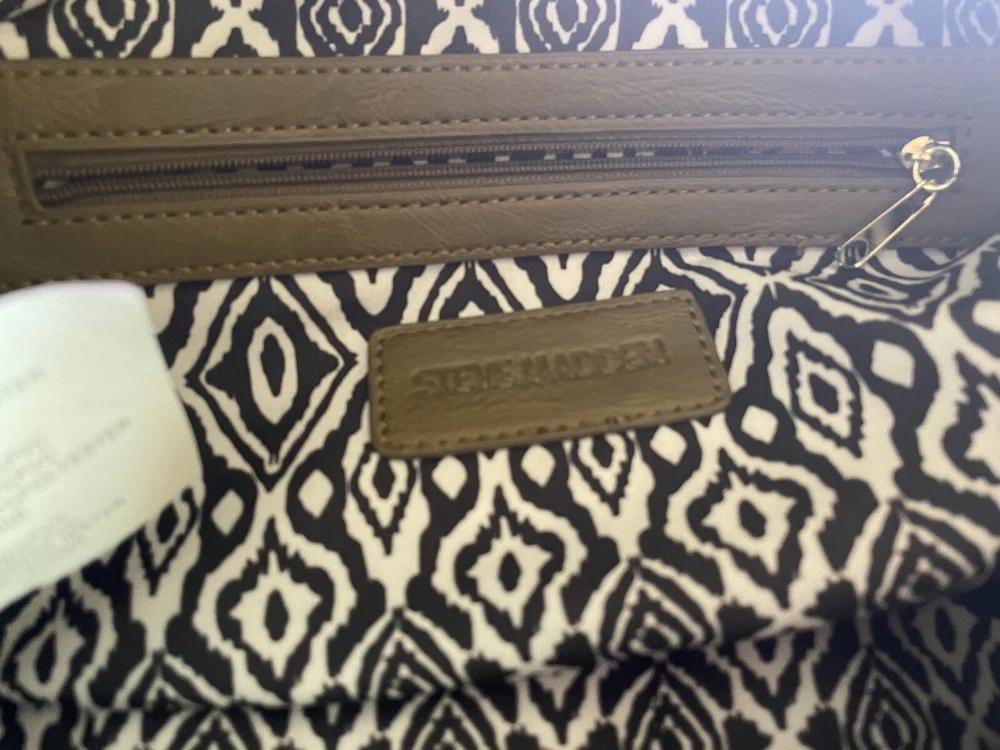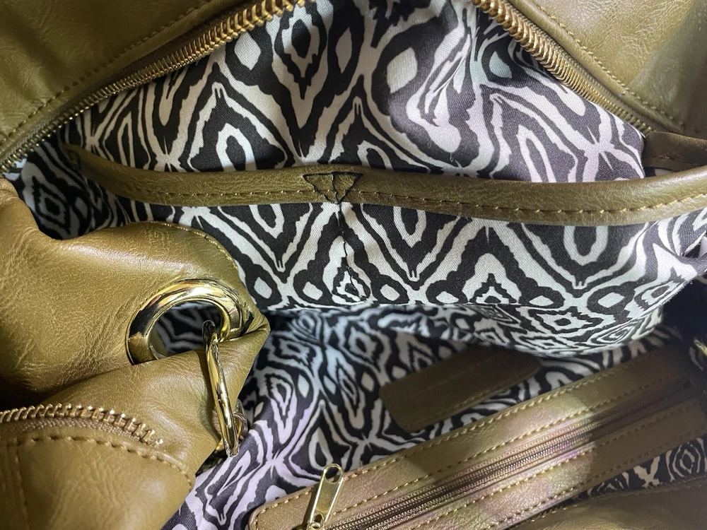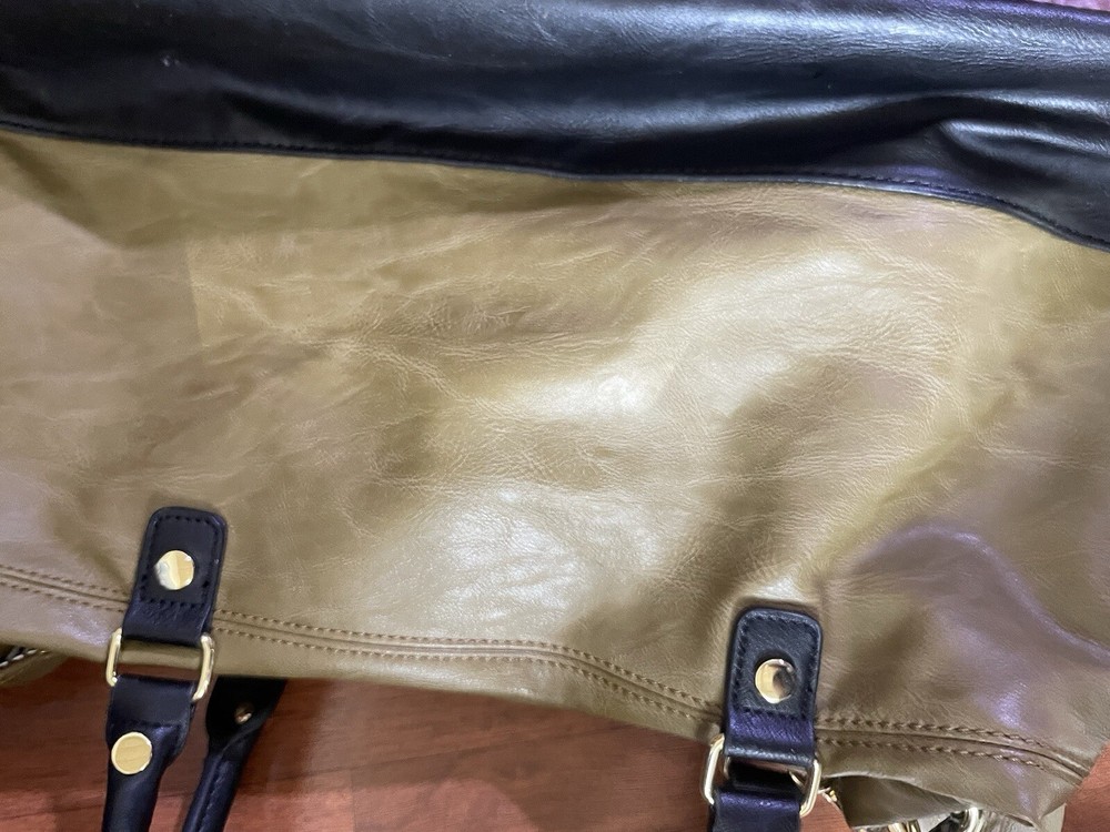 Steve Madden Hobo Shoulder Crossbody Bag Tote Gold/ Black Faux Leather. Condition is Pre-owned. Shipped with USPS Ground Advantage.