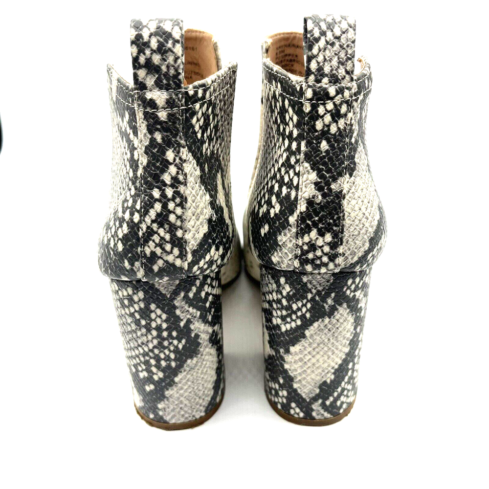 Unleash your wild side with these Steve Madden ankle boots, crafted for the fashion-forward woman. In a sleek gray snakeskin pattern, these boots feature a pull-on design that combines convenience with contemporary style. The faux lining ensures comfort while the sturdy block heel adds a touch of sophistication with its 3 to 3.9-inch height, perfect for elevating any outfit. Designed with a synthetic upper and a durable leather finish, these boots are a testament to quality and style. The 8.5 US size fits true to size, ensuring a great fit. With their distinctive snake theme and versatile platform style, they're an ideal choice for those looking to make a subtle, yet striking statement.