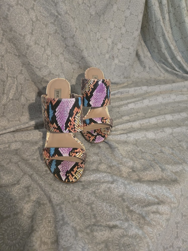 Elevate your footwear collection with the Steve Madden Snake Print Heels. These chic pumps feature a bold animal print that's sure to make a statement with any outfit. Crafted with a soft suede upper and designed with a comfortable round toe, these heels blend style and comfort seamlessly. The slip-on closure ensures easy wearability, making them a perfect choice for those on-the-go days. With a versatile multicolor palette, they can effortlessly complement both casual and formal looks. Step out in confidence and let these Steve Madden heels carry you to new heights of fashion.