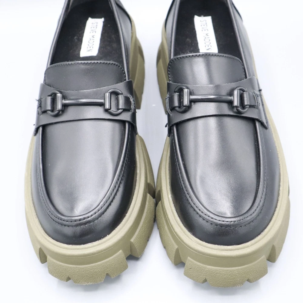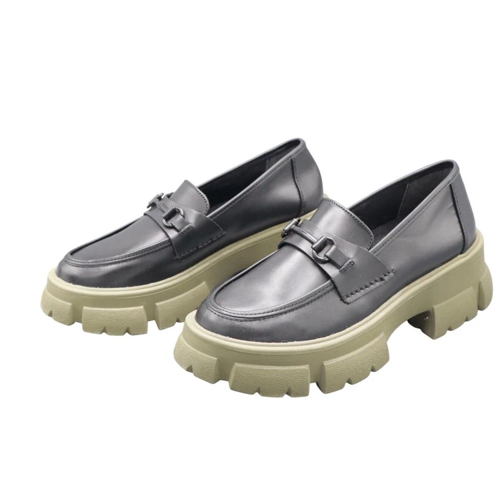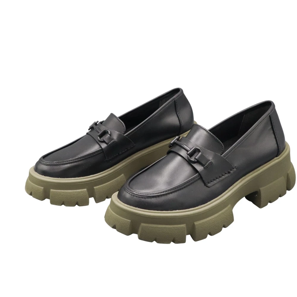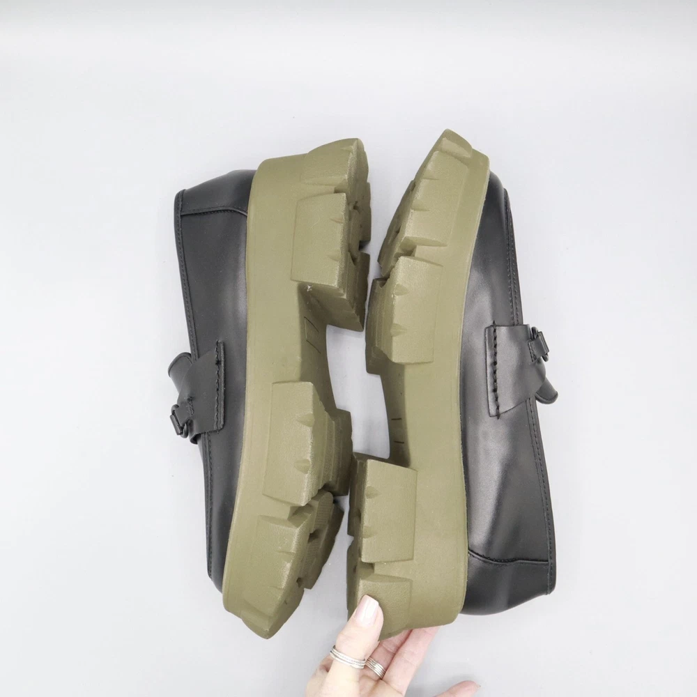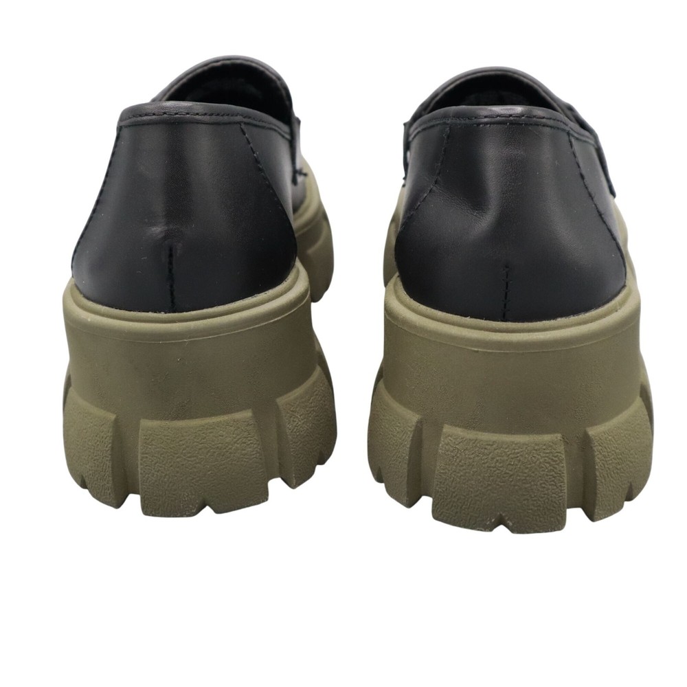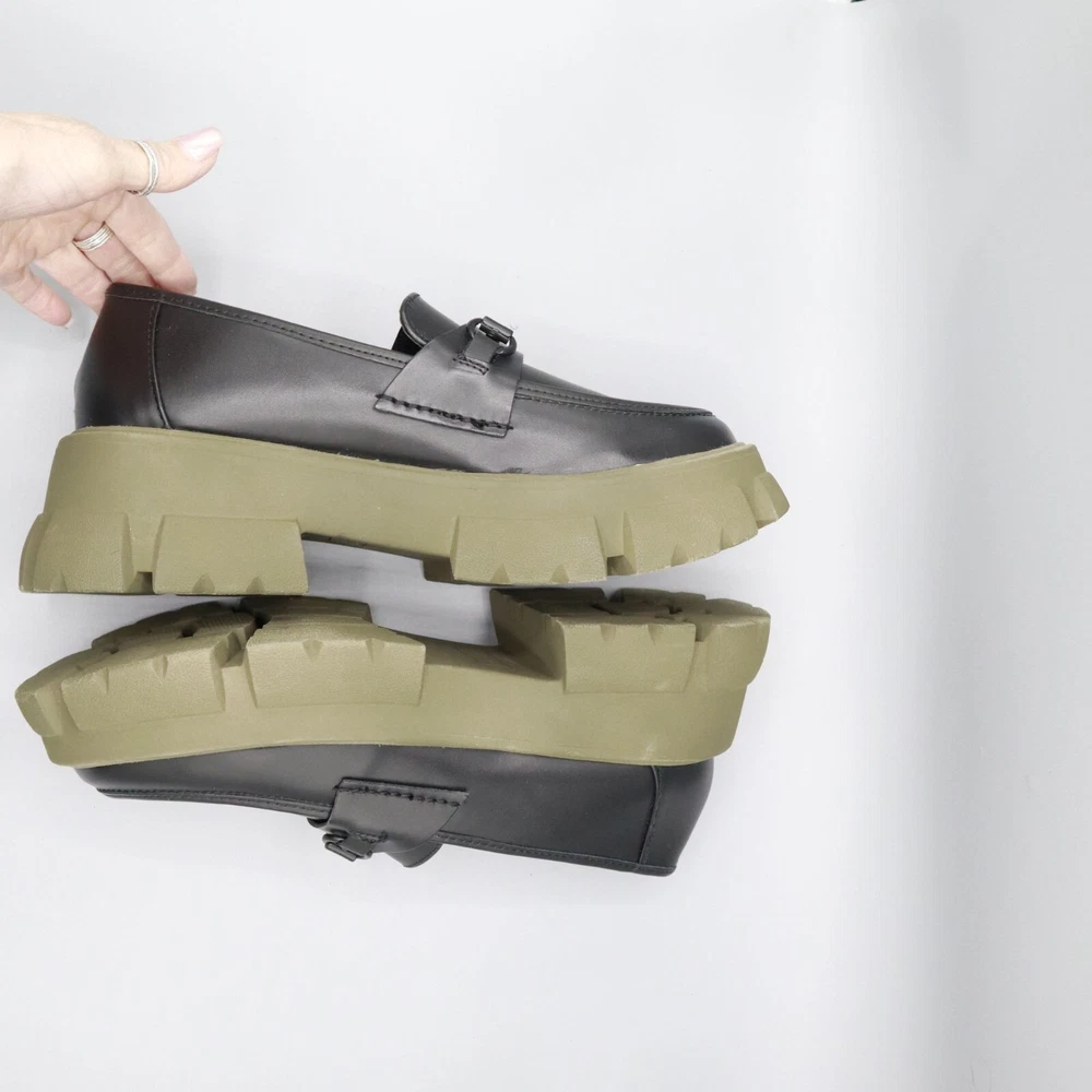 These Y2K style loafers mean business, but with a touch of rebellion. Walk with authority on chunky green soles that say, "I've got style and grip." • Chunky olive green rubber soles • Sleek black leather upper • Classic loafer strap detail • Slip-on design for convenience • Sturdy sole for long-lasting wear Features: platform, chunky, trendy, loafer, classic, elevated basic, preppy, academia, prep, urban, school, timeless, polished, career Size: Womens 9.5 Condition: Pre-Owned Like New Excellent pre-owned condition. See photos for more details.