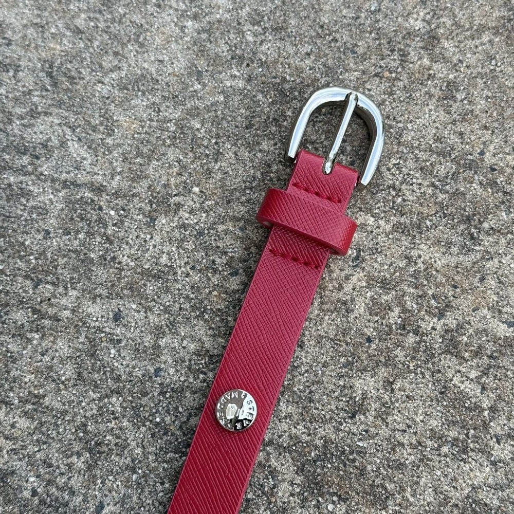 Steve Madden Womens Red Skinny Belt with Silver Buckle