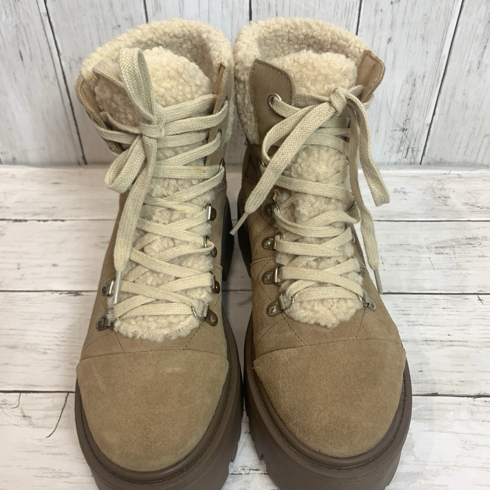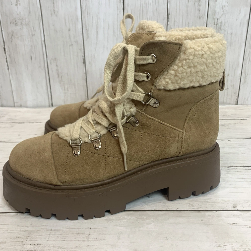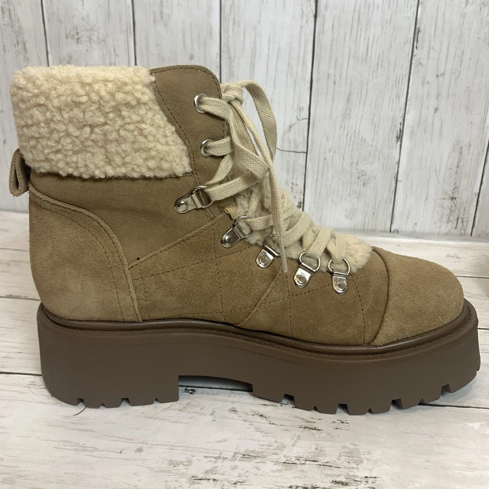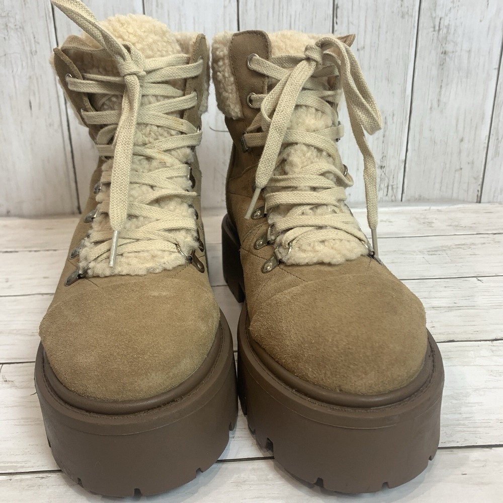 New without box/ tag 8.5 US size D-ring eyelets and plush faux shearling underscore the outdoorsy vibe of this hiking-inspired boot remixed with a chunky lug sole. 2 3/4" heel; 2" platform (size 8.5) 5 1/2" shaft Leather and textile faux-shearling upper/synthetic lining and sole Imported Please let me know if you have any questions Thank you