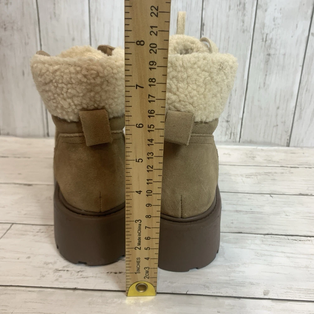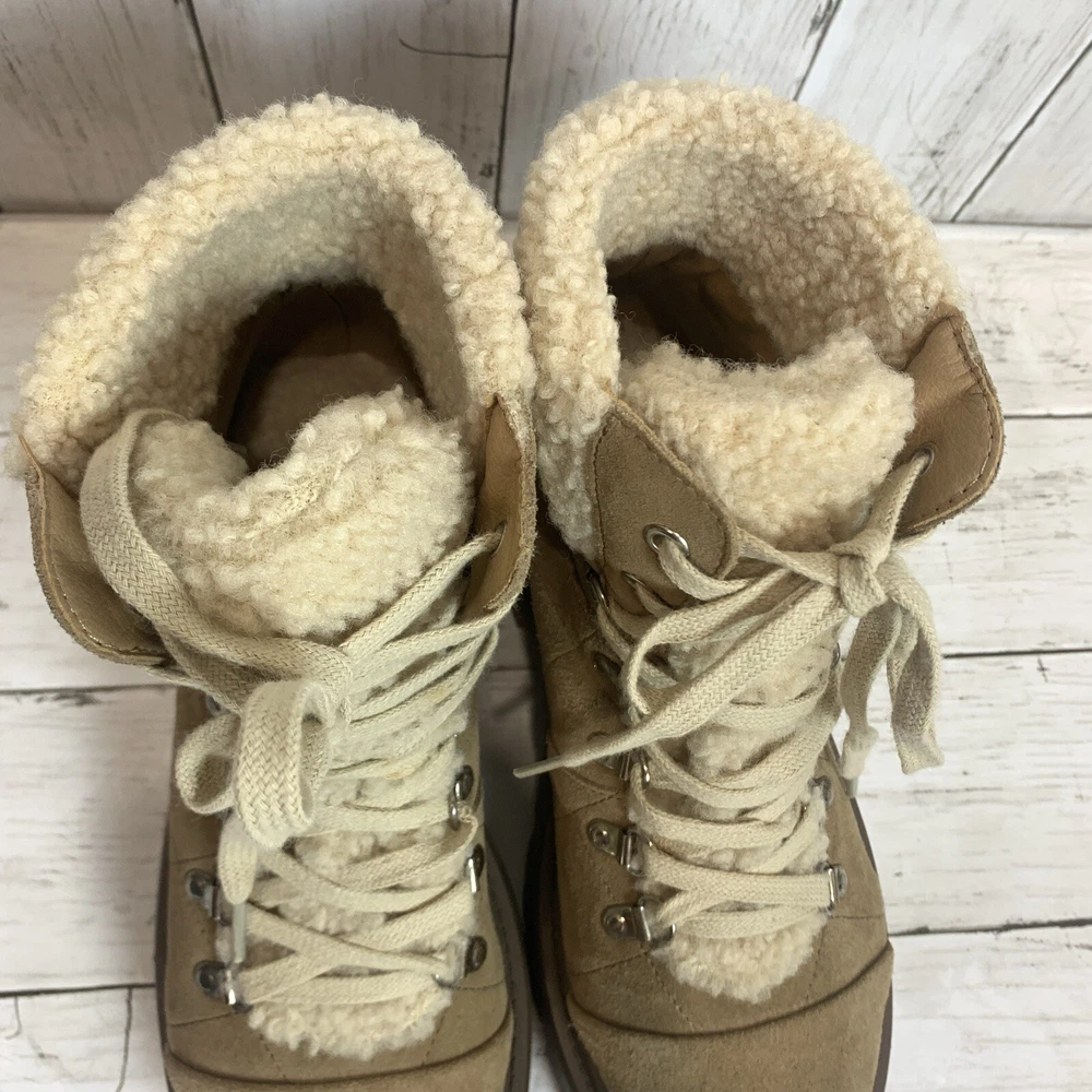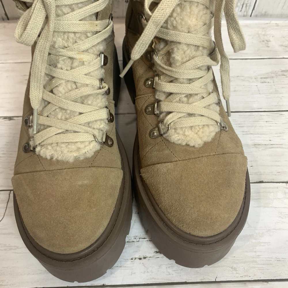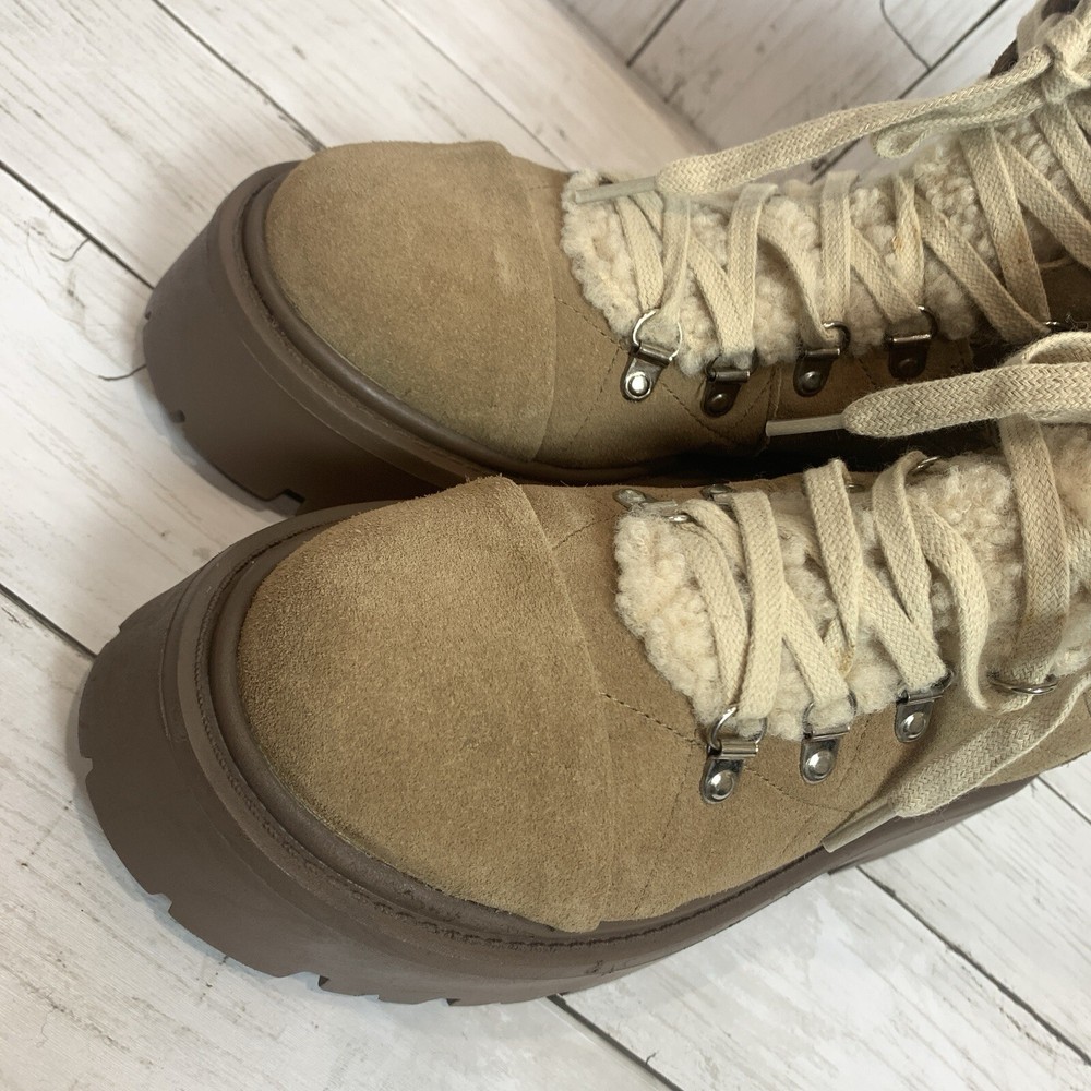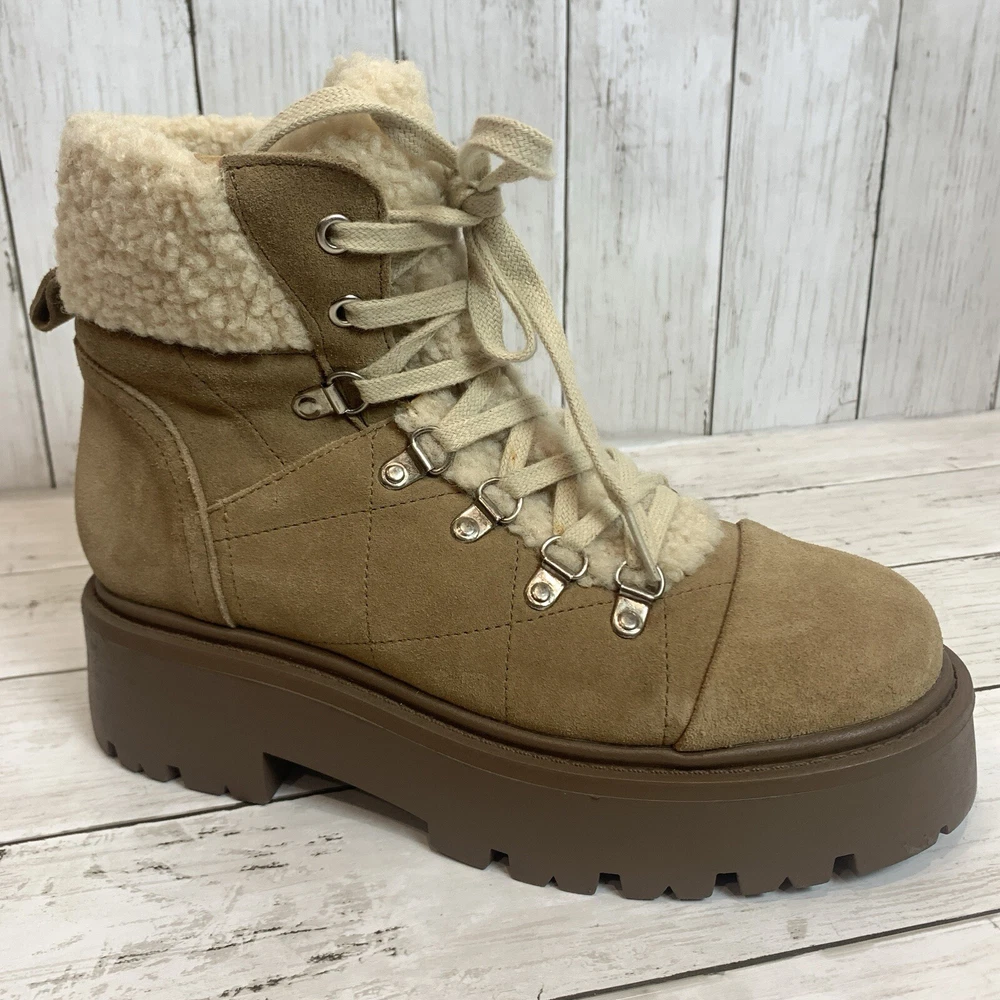 New without box/ tag 8.5 US size D-ring eyelets and plush faux shearling underscore the outdoorsy vibe of this hiking-inspired boot remixed with a chunky lug sole. 2 3/4" heel; 2" platform (size 8.5) 5 1/2" shaft Leather and textile faux-shearling upper/synthetic lining and sole Imported Please let me know if you have any questions Thank you
