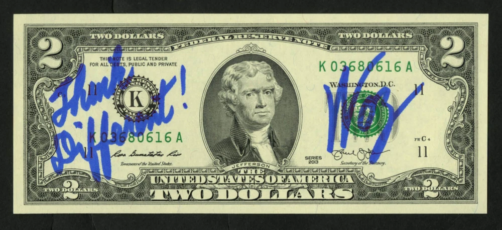 eBay Store SIGNED ACTORS SIGNED ACTRESSES SIGNED BASEBALL SIGNED BASKETBALL SIGNED BOOKS SIGNED CHECKS SIGNED COLLECTIBLE TOYS SIGNED FOOTBALL SIGNED GOLF SIGNED HOCKEY SIGNED HORSE RACING SIGNED INDEX CARDS SIGNED IN THE PRESENCE SIGNED MISCELLANEOUS SIGNED MODELS SIGNED MUSICIANS SIGNED NASCAR SIGNED OLYMPIANS SIGNED ORIGINAL ART SIGNED POSTERS/PRINTS SIGNED ROOKIEBALL/GRAPH eBay Feedback eBay Auctions eBay Me Autographed Item Item Description I have available this 2 Dollar Bill that has been signed by Steve Wozniak. Mr. Wozniak signed this Two Dollar Bill for me IN PERSON and he added "Think Different!" with his signature. The $2 Bill is in brand new unused condition, no dents, dings or tears and would make a great addition to any Apple fans collection. The signature has been authenticated by PSA/DNA and the PSA/DNA certification number for this bill is: AN42036 Similar Items Please click the button below to view our other auctions which are similar to this item. Search Payment Details We gladly accept PayPal for all payments. Payment for your item is expected within 5 days of placing your order. Shipping Details Domestic/International orders: All packages will be shipped out within 1 business day via the United States Postal Service. A tracking number will also be provided. Insurance for your package is optional, but always advised. Please note: International shipping may be subject to import duties and taxes. These charges are not included in the item price or shipping charges. Customers are responsible for these charges. For an estimate of these charges, we suggest you contact your local post office or local government. Additional Information Professional Sports Authenticator (PSA or PSA/DNA) has authenticated and certified the autograph(s) on the item. You can check certification on this item through their website database at PSAcard.com The image(s) of the signed item is the exact item you will receive. We do not use a stock image in any of our auction listings. Signing images are not included in any of our auctions.
