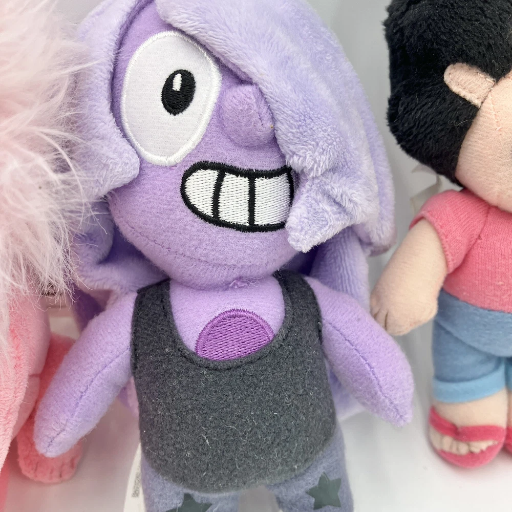 This rare Steven Universe plush toy set includes five of your favorite cartoon characters: Pearl, Garnet, Amethyst, Pink Lion, and Steven. Each plush doll measures 6 inches in height and is made of high-quality materials for durability and cuddling. The colorful design and attention to detail make these plush toys perfect for any Steven Universe fan. The set is made by PhatMojo and is an officially licensed product by Cartoon Network. These plush toys are perfect for collectors or for children to play with. Bring a piece of the Steven Universe franchise into your home with this rare and adorable plush toy set. CONDITION: Pre-owned in good condition. Been lightly played with. No staining, rips, or tears. ****SHIPS NEXT BUSINESS DAY****