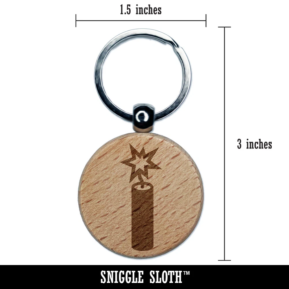 Stick of Dynamite Firecracker Engraved Wood Round Keychain Tag Charm