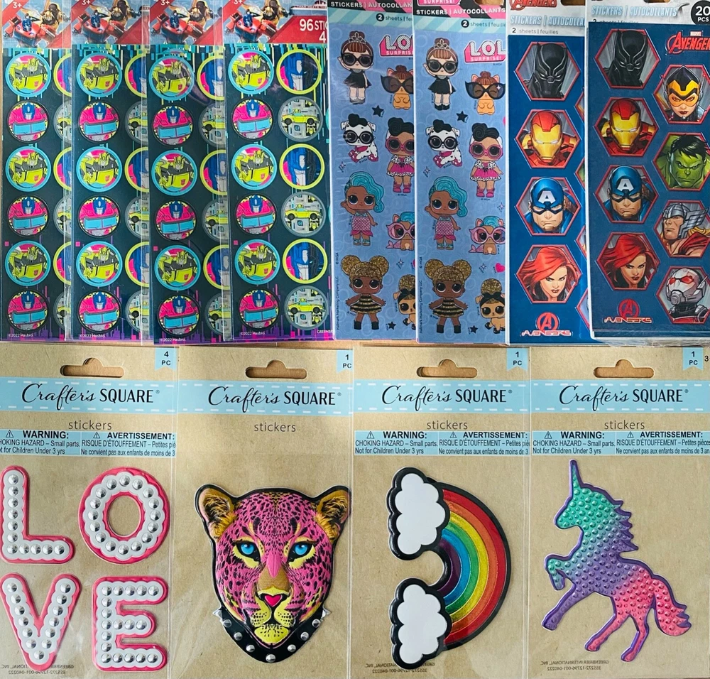 HUGE Mixed Sticker Lot | The Ultimate Kit | Qty. 1099+ Stickers | High Quality Only! Fun Assortment of Puffy, Scrapbook, Cartoons, Bubble, Pop Up Stickers Packs For Everyone! You will receive 25+ Sticker Sheets of beautiful colorful assortment. The Pack will include 1099+ Stickers overall! I have included a large variety of pictures of the assortment available. The pictures give you an idea of what you will be receiving. Please Note: You will not receive everything pictured. Please contact me with any special requests. This HUGE Variety of fun designs stickers can be used in parties, classroom, school and home, good for reward for students, potty training, adding inside a birthday card, game activities, entertaining toddlers, etc. Perfect Gifts for Kids & all Occasions: Can be given as a gift for kids, girls, boys, toddlers, teens, students, friends, and classmates, they will love it!