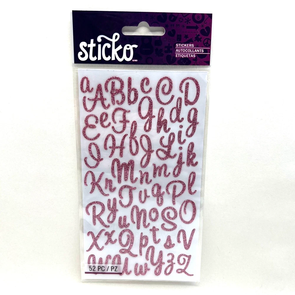 Pretty pink glitter script letters. 52 pieces. I have more stickers, washi tape and paper for sale. I do combine shipping. Please put all the items you want to purchase in ONE cart and then pay. I will refund you the difference in shipping after shipping label is printed. Let me know if you have any questions through eBay messaging. Thank you for stopping by!