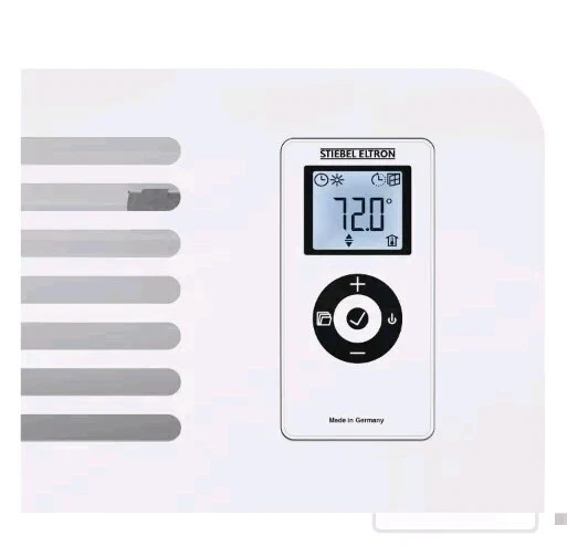 This heater features a space-saving, wall-mounted design that's easy to install. It also features a self-learning program in its timer mode that pre-heats the room, reaching the desired room temperature at the programmed time, not after. With its frost-protection setting, this heater will maintain above-freezing temperatures in a 150 sq. ft. room and has a temperature range between 41 and 86 degrees Fahrenheit. This unit is the perfect addition for retrofit and new construction with its stylish European convection design and its power to heat a space both evenly and silently. It requires a 208/240V electrical connection for operation. Width: 24 5/8" Depth: 4 15/16" Height: 18 1/2" *This product must be hardwired by a professional; it does not plug into a standard wall outlet.*
