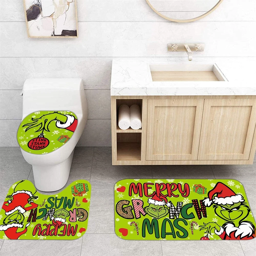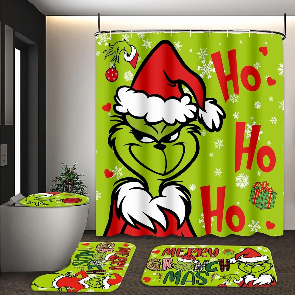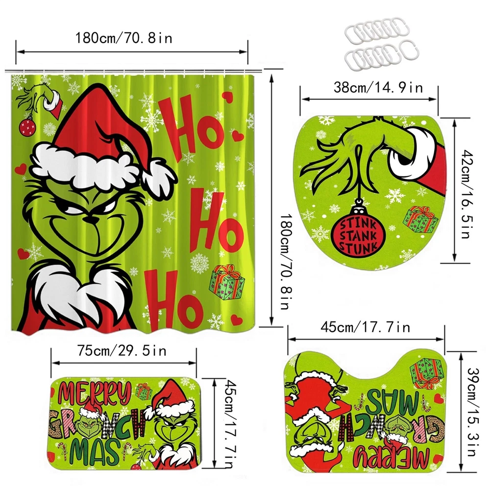 4 Pcs Christmas Bathroom Set, Christmas Shower Curtain Sets Shower Curtain Non-Slip Rugs Toilet Lid Cover And Bath Mat Set 72 X 72 Inches With Hooks Description: Festive Bathroom Transformation : your bathroom decor this holiday season with our Christmas Bathroom Decorations. This 4-piece set includes Shower Curtain and Rugs, Toilet Lid Rug, U Shape Mat and Bath Mat, allowing you to create a whimsical and festive atmosphere in your bathroom. Impress your guests with a cheerful and merry bathroom that will bring joy to all who enter. High-Quality and : Our Christmas Bathroom Decorations are made from premium materials that are built to last. The poducts are designed to fit most standard-sized toilets, ensuring a secure and snug fit. The Non-Slip Floor Mat is made with a non-slip backing, providing added safety and preventing accidents on wet bathroomfloors. Each piece of this set is carefully crafted to withstand the daily use and provide a long-lasting Christmas decor solution for your bathroom. Adorable and Playful Cartoon Designs : Add a of cuteness to your bathroom with our Cute Cartoon Home Bathroom Decorations. These playful characters will bring a sense of joy and whimsy to your bathroom, making it a fun and festive space for the entire family to enjoy. Practical and Functional : While our Christmas Bathroom Decorations are certainly festive, they also serve a functional purpose. Christmas Shower Curtain Sets not add a decorative but also your toilet fromscratches, and dirt, keeping it clean and hygienic. The Non-Slip Floor Mat provides a safe and comfortable surface to step on, preventing and falls on wet bathroom floors. Easy Installation and Storage : Our Christmas Bathroom Decorations are designed with convenience in mind. The Non-Slip Floor Mat stays in place even with heavy foot traffic due to its non-slip backing. When the holiday season comes to an end, simply remove the Curtain and mat and store them away for next year. The package contains: 1×bathroom carpet set (four-piece set)