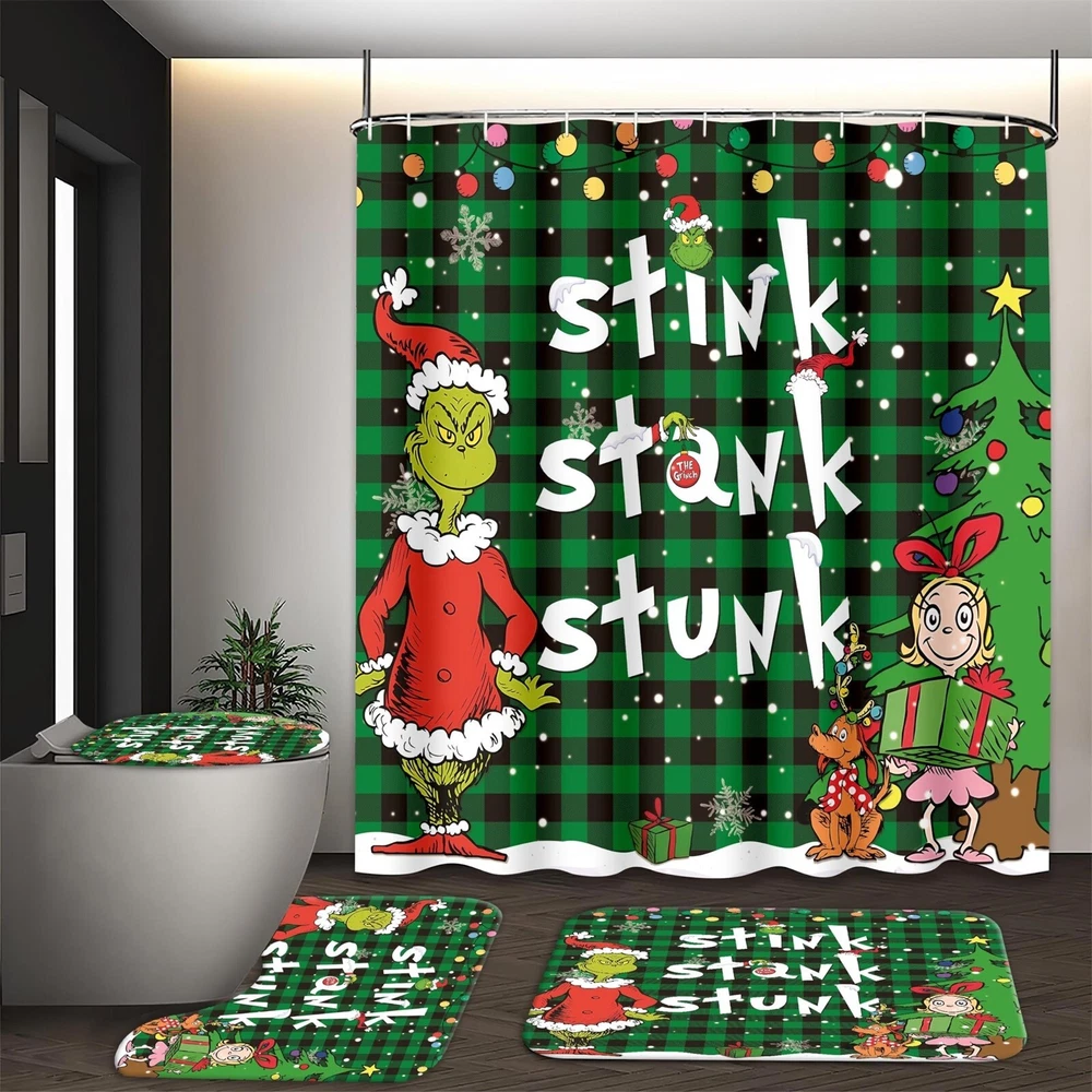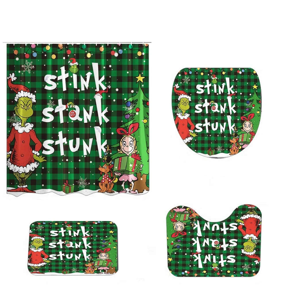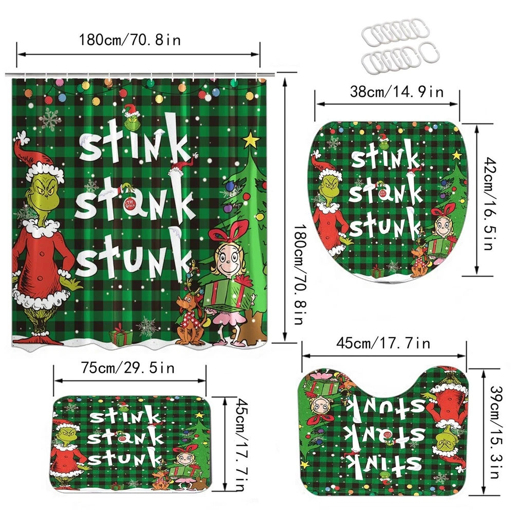 4 Pcs Christmas Bathroom Set, Christmas Shower Curtain Sets Shower Curtain Non-Slip Rugs Toilet Lid Cover And Bath Mat Set 72 X 72 Inches With Hooks Description: Festive Bathroom Transformation : your bathroom decor this holiday season with our Christmas Bathroom Decorations. This 4-piece set includes Shower Curtain and Rugs, Toilet Lid Rug, U Shape Mat and Bath Mat, allowing you to create a whimsical and festive atmosphere in your bathroom. Impress your guests with a cheerful and merry bathroom that will bring joy to all who enter. High-Quality and : Our Christmas Bathroom Decorations are made from premium materials that are built to last. The poducts are designed to fit most standard-sized toilets, ensuring a secure and snug fit. The Non-Slip Floor Mat is made with a non-slip backing, providing added safety and preventing accidents on wet bathroomfloors. Each piece of this set is carefully crafted to withstand the daily use and provide a long-lasting Christmas decor solution for your bathroom. Adorable and Playful Cartoon Designs : Add a of cuteness to your bathroom with our Cute Cartoon Home Bathroom Decorations. These playful characters will bring a sense of joy and whimsy to your bathroom, making it a fun and festive space for the entire family to enjoy. Practical and Functional : While our Christmas Bathroom Decorations are certainly festive, they also serve a functional purpose. Christmas Shower Curtain Sets not add a decorative but also your toilet fromscratches, and dirt, keeping it clean and hygienic. The Non-Slip Floor Mat provides a safe and comfortable surface to step on, preventing and falls on wet bathroom floors. Easy Installation and Storage : Our Christmas Bathroom Decorations are designed with convenience in mind. The Non-Slip Floor Mat stays in place even with heavy foot traffic due to its non-slip backing. When the holiday season comes to an end, simply remove the Curtain and mat and store them away for next year. The package contains: 1×bathroom carpet set (four-piece set)