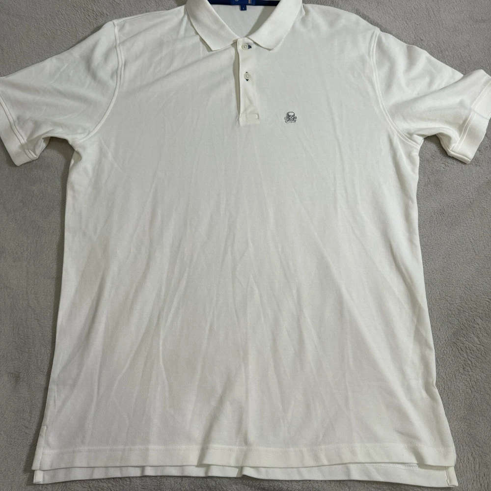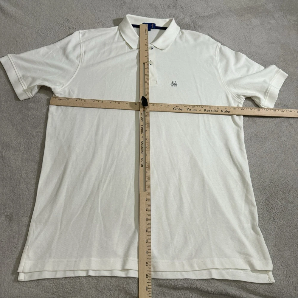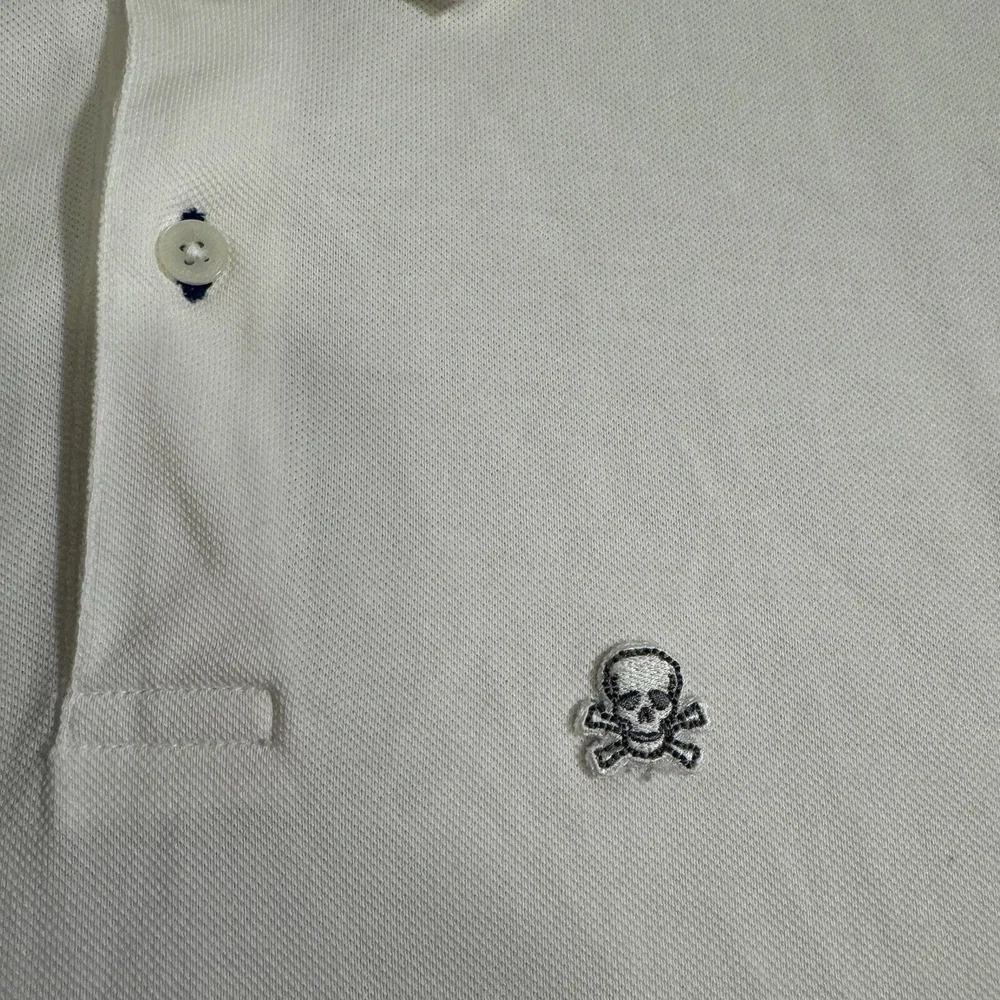 Stitch Polo Shirt XL Skull Crossbones Logo White Cotton Stretch Golf S/S