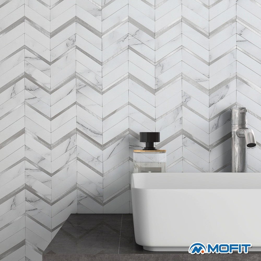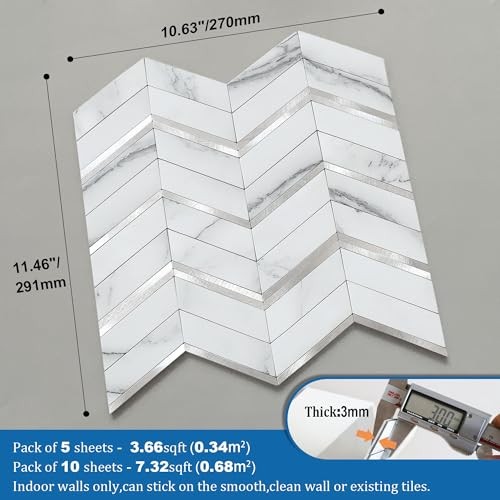herringbone peel and stick tile Backsplash, Herringbone Peel and Stick Backsplash, stick on backsplash, peel and stick tile, marble backsplash peel and stick Marble Herringbone Peel and Stick Backsplash: Great quality,nice and thick with a realistic appearance.These mosaic tile stickers are individual PVC & metal pieces on a foam adhesive backer so they are more convincingly realistic than some of the other flimsy vinyl sheet kind. Make the perfect statement and adds the perfect touch to your wall.These tiles can be used as a visual detail on a furniture rehab too Durable Stick-on Tiles: Super sticky,once on the wall definitely not coming off easily.Can install on smooth ceramic tiles backsplash, smooth glass tiles backsplash, acrylic panel, pained gypsum,stainless metal, mirror glass,etc Waterproof & Heat Resistant Peel-and-Stick Tile: Widely used in kitchen island walls, bathroom backsplash, shower walls,laundry room, camper backsplash,bars,fireplace surrounding, and installed behind the stove Best Value Stick on Backsplash: Looks like real marble tile,looks elegant and expensive.It is lightweight and easy to install than real stone tile,No contractor required. Definitely worth your every penny Easy Do It Yourself: Just peel, interlock and stick. No grout and no mess, save your time and money on labor.Easy to cut with a utility knife or Heavy Duty Scissor.Can use one of the these tools to get a good clean edge when cutting:Heavy Duty Shears/Tin Snip/Jig Saw /Chop Saw