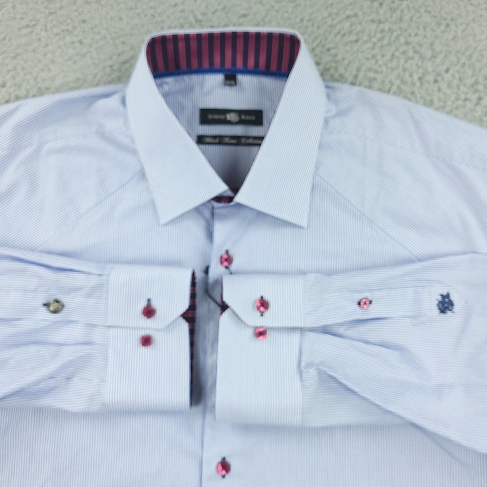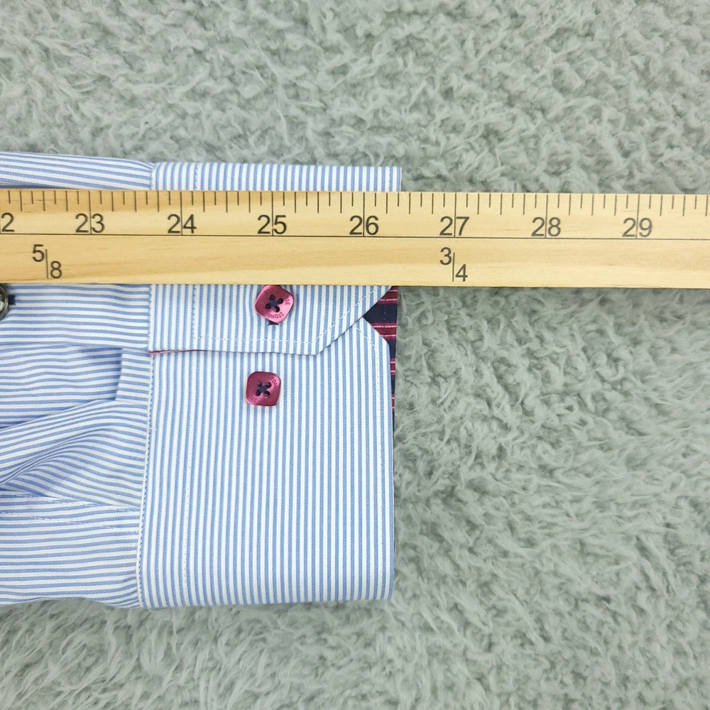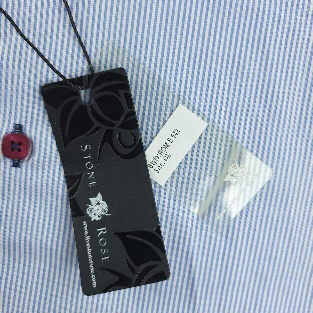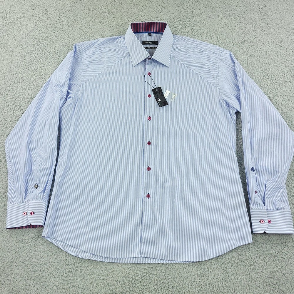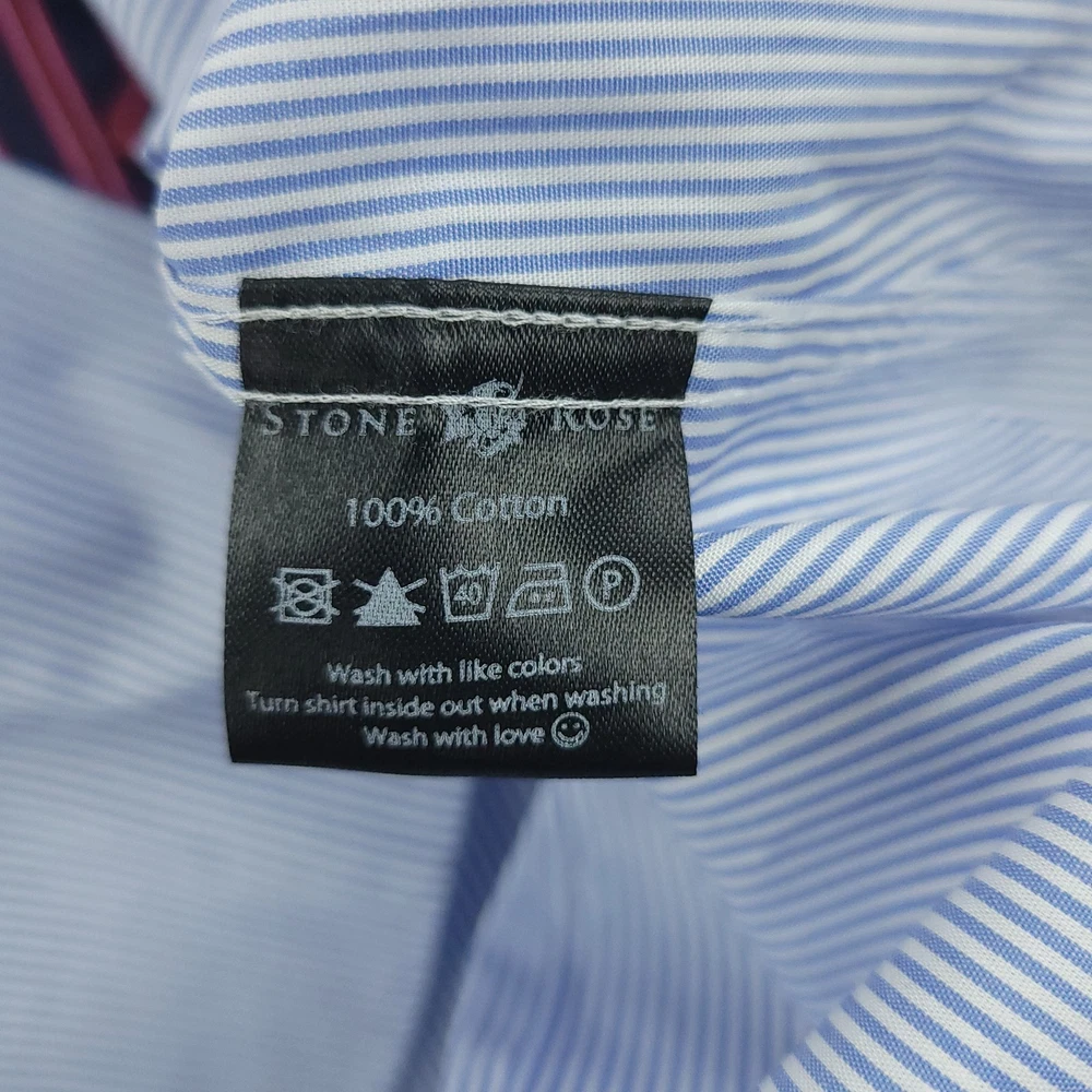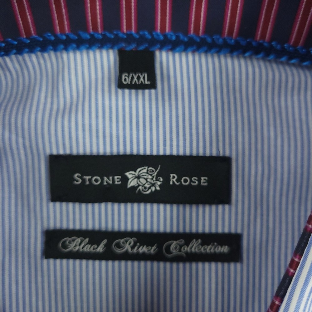 Stone Rose Shirt Mens 2XL Blue Stripe Black River Collection Button Up Condition: Pre-owned Excellent condition includes original hang tags Color: Light blue with fine white pinstripes Contrast features: Burgundy and navy stripe trim inside collar and cuffs Signature Stone Rose pink buttons and contrast stitching accents Collar: Spread collar with vibrant inner color pop Cuffs: Double button convertible cuffs with contrast lining Material: 100% Cotton as indicated on tag Model: Black River Collection Style Code: ROME-542 Size on tag: 6/XXL (2XL) Made in Turkey Measurements shown in photos High quality contemporary woven dress shirt, perfect for business or smart casual occasions Washed and dried with Fragrance Free Detergent & Dryer Sheets. Measurements are included in the photos, compare measurements with your item to ensure proper fit. (Measurements are done with the item lying flat). I ship next business day and all items include tracking. Items are added daily to my store Visit My Store Buy More & Save! Combined shipping for US customers - $1.99 for each additional item (Add items to shopping cart and discounts will automatically calculate during checkout)