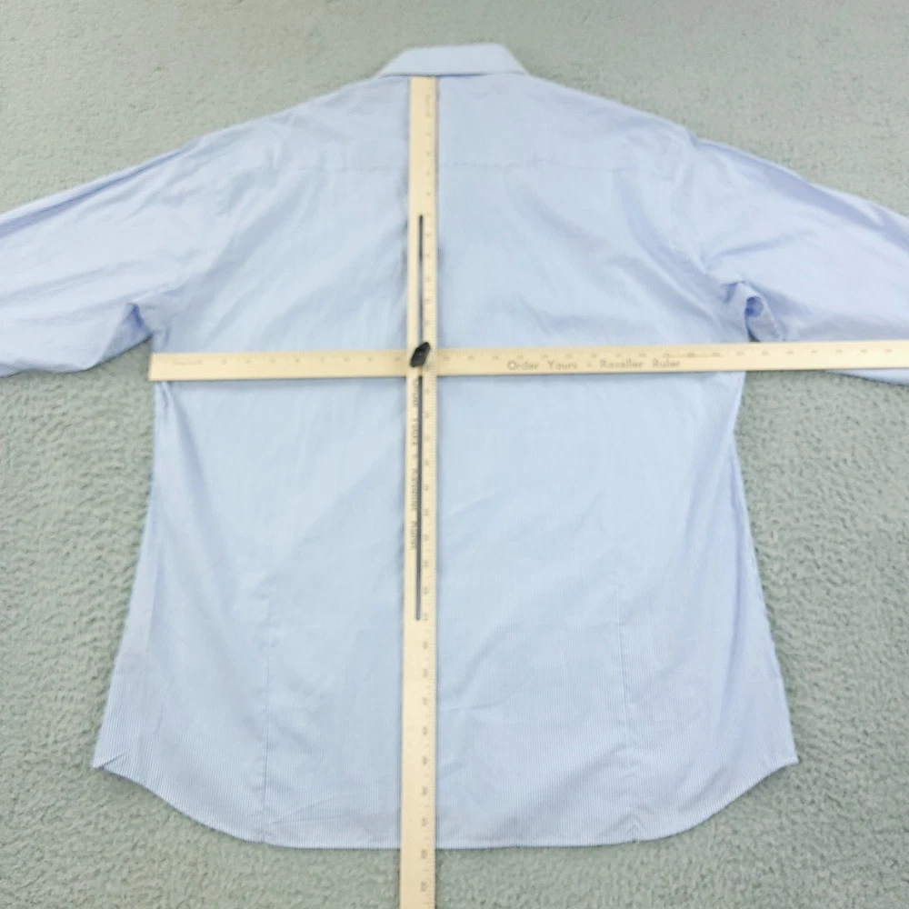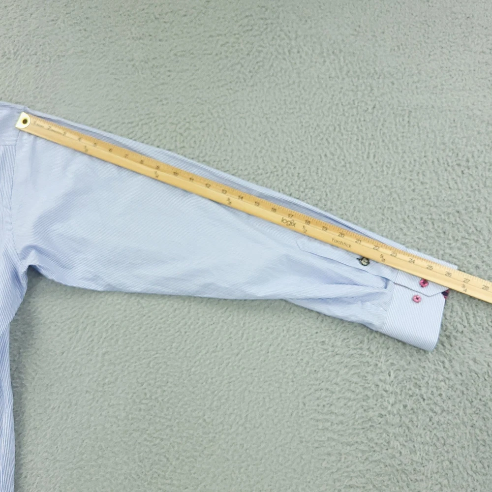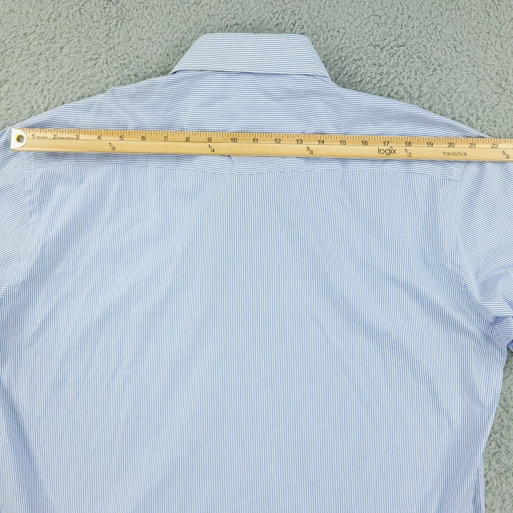 Charles Tyrwhitt Dress Shirt Mens 16.5 White Blue Stripe Slim Non Iron Cotton