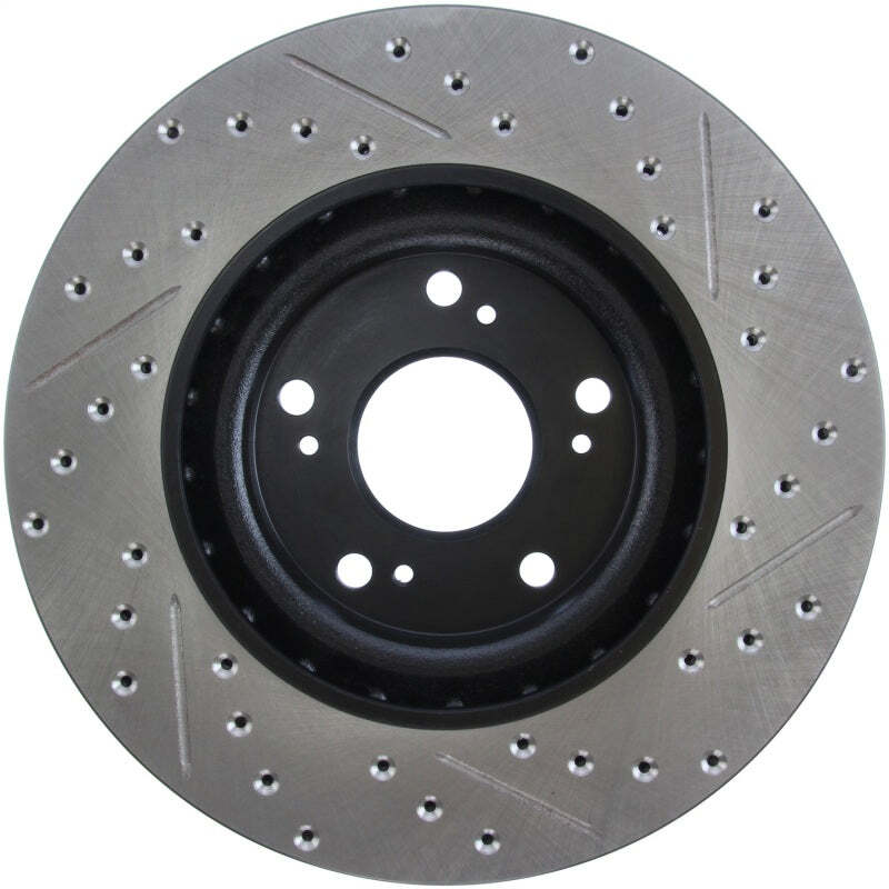 StopTech Drilled and Slotted Sport Rotors are 1-piece direct replacement brake discs for factory brake systems and stock calipers that look great behind your wheels a** and offer significantly improved braking performance. The unique cross-drilling and slotting aids with heat and brake dust dispersal; prevents glazing of the pads; adds bite and improves wet and dry braking performance. Built to last; the black e-coating provides protection from corrosion and the high carbon metallurgy (in most applications) offers quieter operation; better crack resistance and increased performance. Premium e-coated rotor with advanced metallurgy that greatly reduces pad squeal. Especially effective with higher friction; European style brake pad compounds. Drilled & Slotted for increased bite; improved looks and better performance Premium e-coated rotor with advanced metallurgy that greatly reduces pad squeal; Especially effective with higher friction; European style brake pad compounds; Added Molybdenum and Chromium to resist rotor cracking 2007 - 2011 Acura CSX, 2013 - 2015 Acura ILX, 2002 - 2006 Acura RSX, 2006 - 2015 Honda Civic, 2005 - 2006 Honda CR-V Fitment: Acura ILX Base 2013 Acura ILX Base 2014 Acura ILX Base 2015 Acura RSX Type-S 2002 Acura RSX Type-S 2003 Acura RSX Type-S 2004 Acura RSX Type-S 2005 Acura RSX Type-S 2006 Honda Civic EX 2012 Honda Civic MUGEN Si 2008 Honda Civic Si 2006 Honda Civic Si 2007 Honda Civic Si 2008 Honda Civic Si 2009 Honda Civic Si 2010 Honda Civic Si 2011 Honda Civic Si 2012 Honda Civic Si 2013 Honda Civic Si 2014 Honda Civic Si 2015 Honda CR-V EX 2005 Honda CR-V EX 2006 Honda CR-V LX 2005 Honda CR-V LX 2006 Honda CR-V SE 2005 Honda CR-V SE 2006