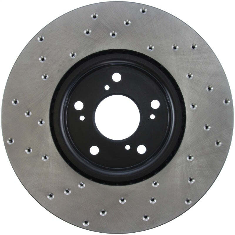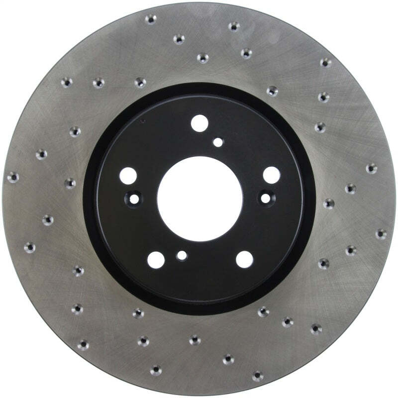 StopTech Drilled Sport Rotors are 1-piece direct replacement brake discs for factory brake systems and stock calipers that look great behind your wheels a** and offer significantly improved braking performance. The unique cross-drilling aids with heat and brake dust dispersal; prevents glazing of the pads; adds bite and improves wet and dry braking performance. Built to last; the black e-coating provides protection from corrosion and the high carbon metallurgy (in most applications) offers quieter operation; better crack resistance and increased performance. Premium e-coated rotor with advanced metallurgy that greatly reduces pad squeal. Especially effective with higher friction; European style brake pad compounds. Drilled for increased bite; improved looks and better performance Premium e-coated rotor with advanced metallurgy that greatly reduces pad squeal; Especially effective with higher friction; European style brake pad compounds; Added Molybdenum and Chromium to resist rotor cracking 2004 - 2008 Acura TL Fitment: Acura TL Base 2004 Acura TL Base 2005 Acura TL Base 2006 Acura TL Base 2007 Acura TL Base 2008 Acura TL Type-S 2007 Acura TL Type-S 2008