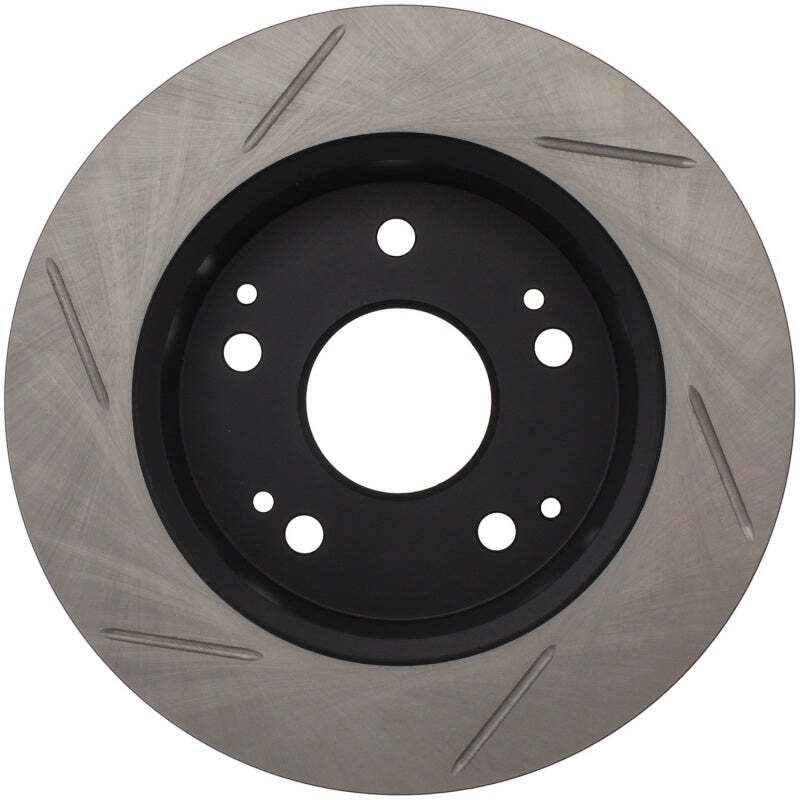StopTech Slotted Sport Rotors are 1-piece direct replacement brake discs for factory brake systems and stock calipers that look great behind your wheels a** and offer significantly improved braking performance. The unique slotting aids with heat and brake dust dispersal; prevents glazing of the pads; adds bite and improves wet and dry braking performance. Built to last; the black e-coating provides protection from corrosion and the high carbon metallurgy (in most applications) offers quieter operation; better crack resistance and increased performance. Premium e-coated rotor with advanced metallurgy that greatly reduces pad squeal. Especially effective with higher friction; European style brake pad compounds. Slotted for increased bite; improved looks and better performance Premium e-coated rotor with advanced metallurgy that greatly reduces pad squeal; Especially effective with higher friction; European style brake pad compounds; Added Molybdenum and Chromium to resist rotor cracking 1997 - 2001 Acura Integra, 2002 - 2006 Acura RSX, 1998 - 2002 Honda Accord, 2004 - 2005 Honda Civic Fitment: Acura Integra Type R 1997 Acura Integra Type R 1998 Acura Integra Type R 2000 Acura Integra Type R 2001 Acura RSX Base 2002 Acura RSX Base 2003 Acura RSX Base 2004 Acura RSX Base 2005 Acura RSX Base 2006 Acura RSX Type-S 2002 Acura RSX Type-S 2003 Acura RSX Type-S 2004 Acura RSX Type-S 2005 Acura RSX Type-S 2006 Honda Accord EX 1998 Honda Accord EX 1999 Honda Accord EX 2000 Honda Accord EX 2001 Honda Accord EX 2002 Honda Accord LX 1998 Honda Accord LX 1999 Honda Accord LX 2000 Honda Accord LX 2001 Honda Accord LX 2002 Honda Civic Si 2004 Honda Civic Si 2005