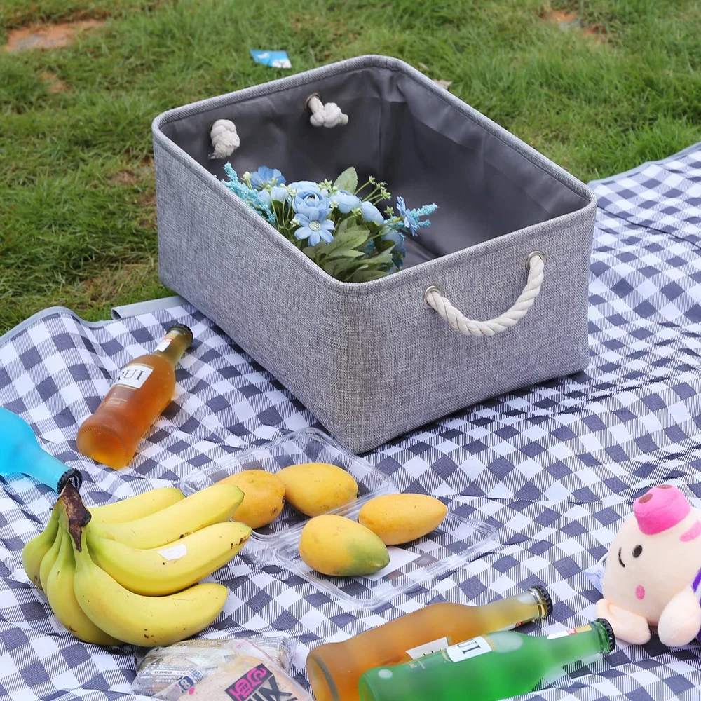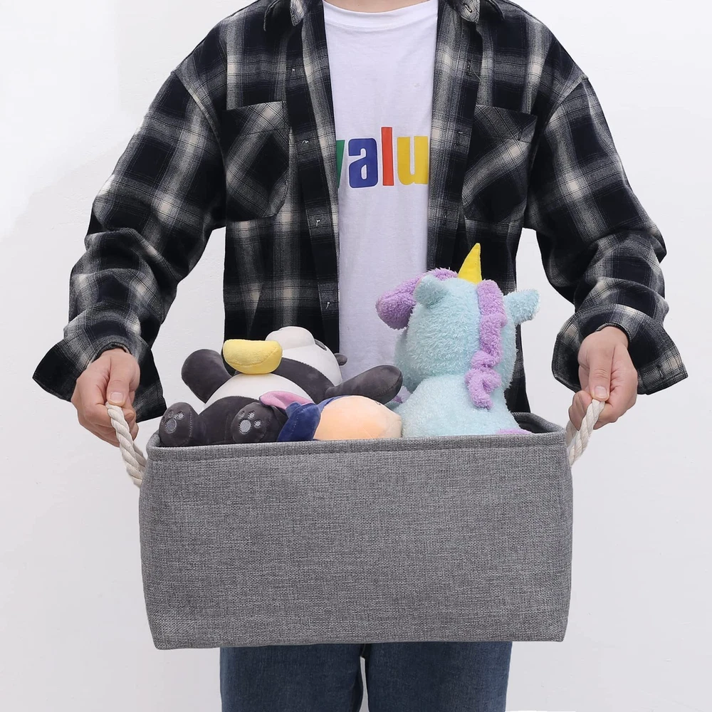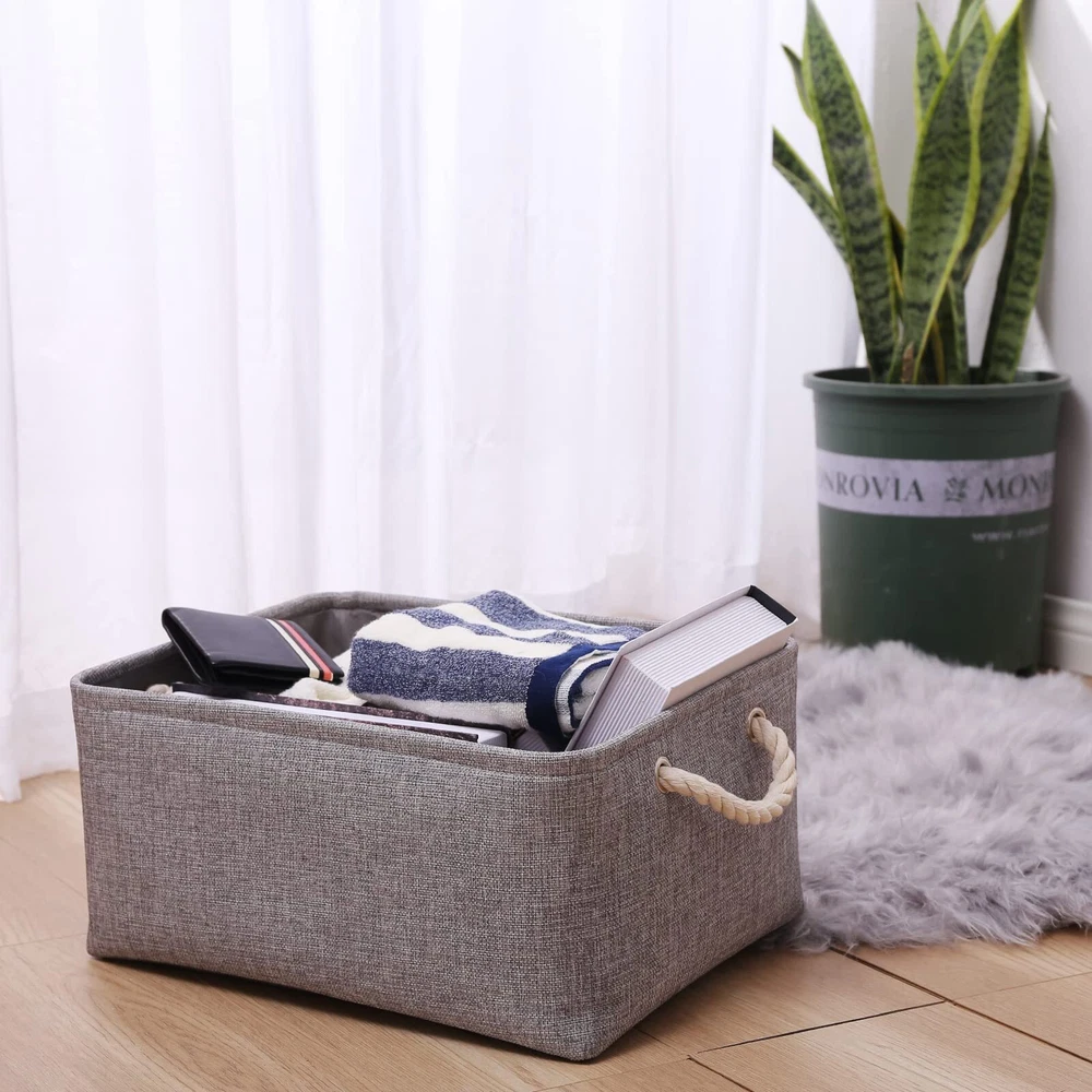 LARGE STORAGE BIN & PRACTICAL & MULTI-PURPOSE - Cube storage bin 11.8L×7.8W×5.9H(in) Fits well with a variety of storage compartments and as shelf baskets, not only can be used as storage baskets for shelves ,closet storage bins, linen closet organizer, nursery basket storage, laundry baskets, bathroom towel storage, also can organizing baby products, clothing, kid’s toys, pet toy products, laundry, towel, bedsheet, sport gears, even can be used in the office, classroom, dorm or RVs. HANDMADE STICHED & DURABLE & STURDY - fabric storage bins outside fabric is made of more durable linen & thicken Environmental EVA, and used a lining material for the inside, Semi handmade stitched. Sturdy metal rod frame around the top keep the basket shape. Strong seams and rope side handles, make this storage baskets are sturdy and easy to grab. Stand up great on their own even unfilled and ensure a greater product lifespan. KEEP YOUR HOME ORGANIZED - Are you stil in troubled by clothes, books and toys often spread all around or Clothes, shoes, hats, sheets or some small items etc too much to be classified ? As a must have for home organization and storage, Fabric storage basket could help you declutter and free up your physical spac. save your housework time, Creating warm room for each family. CARE TIP - Collapsible design for space saving, before use to get the wrinkles out the fabric storage bin: either stuff the fabric storage bins with blankets and pillows for a few days and the baskets will take the shape , or steam iron them at low-heat setting; dusting the basket with a soft dry cloth is recommended. Spot clean with light soapy water when needed. Not recommended to machine wash for there are metal frame. ARTISTIC COLORS & PERFECT BASKET FOR GIFTS - organizer bins is the perfect gift basket for your lover. The Neutral colors and sleek design means that it will fit perfectly into any home styles. It will be the perfect finishing touch to your home. make your home full of Vibrant, Use it to decorate, organize and store items, keep the home clean and comfortable ,the best choice of Christmas/ Birthday/ Wedding gift for your kids /wife /mother /husband /friends. CUSTOMER SERVICES & WARRANTY - Decorative storage basket for better value and shopping convenience, Save your money, time and effort; We promise that we will provide best after-sale services and worry-free 12-month warranty . Come and Try cube storage BIN