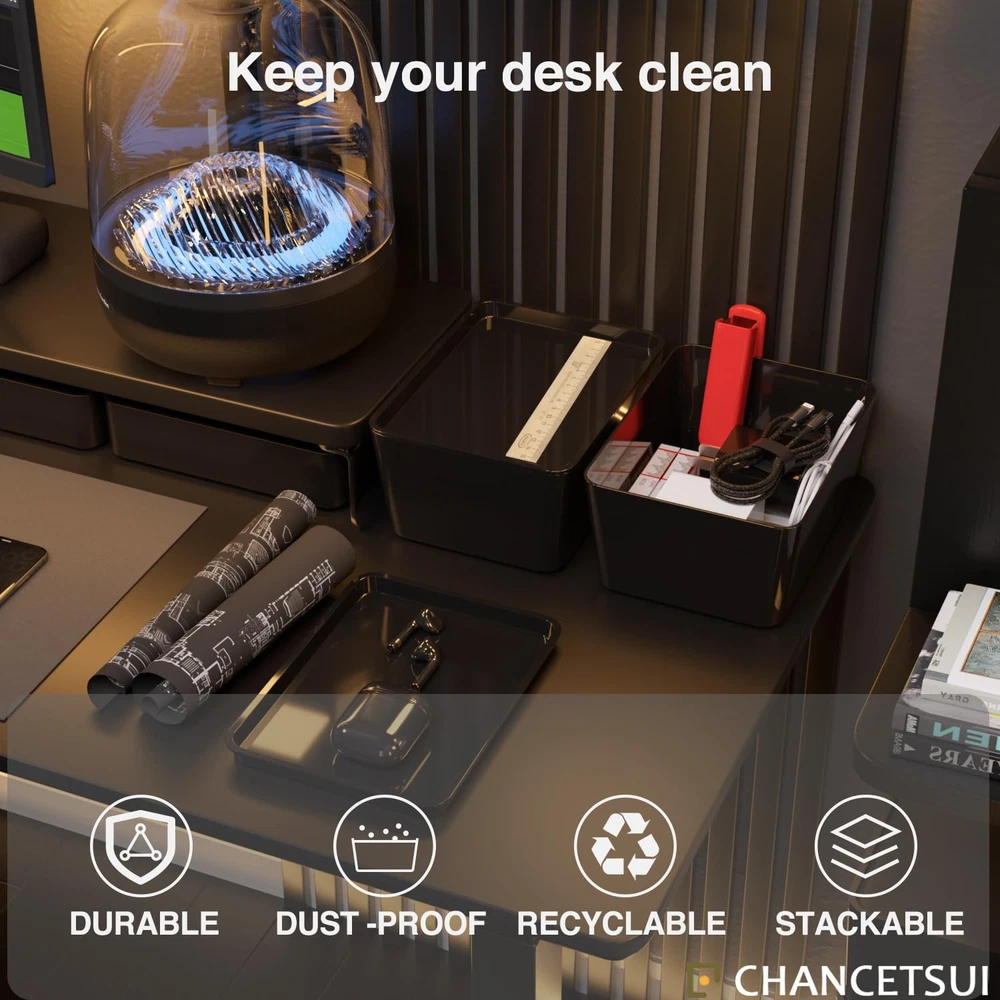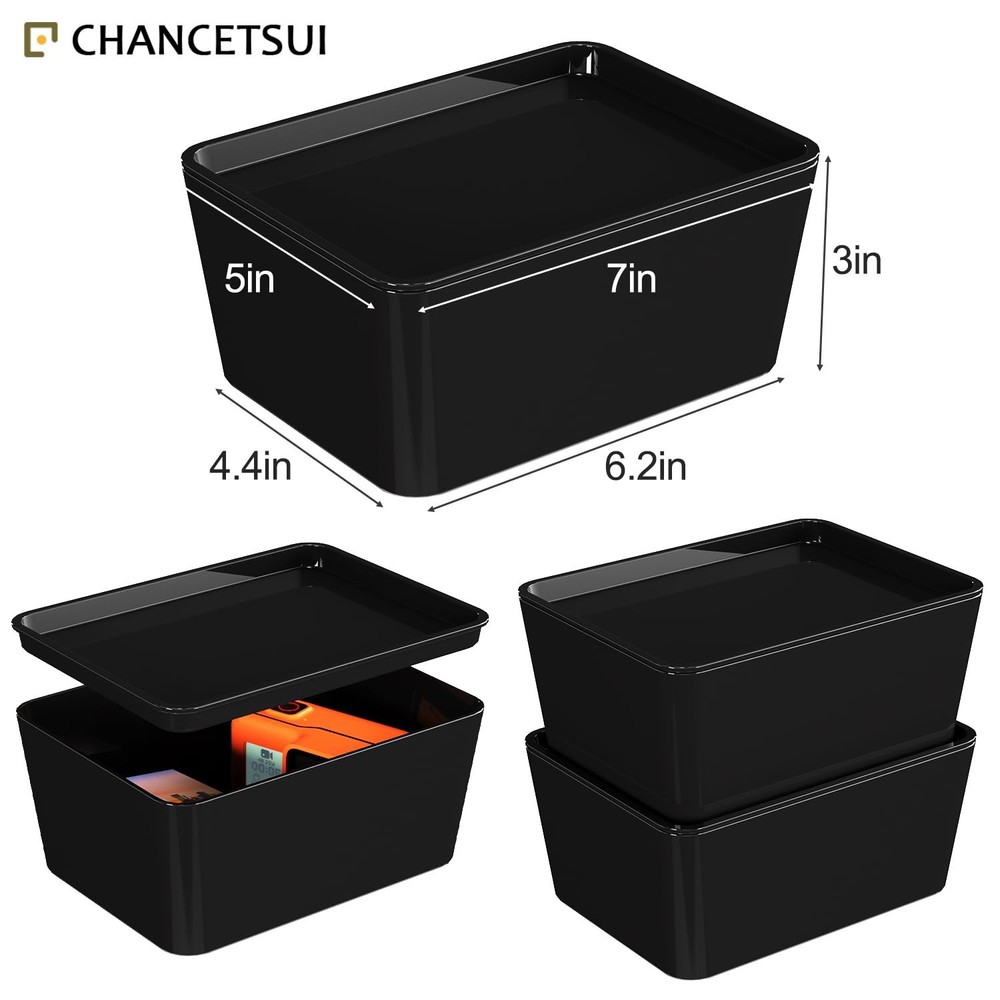 Discover the perfect storage solution with these versatile 5x7 plastic storage containers. The set includes two black bins, each featuring a secure snap-on lid design that ensures your items remain protected. The transparent construction allows for easy visibility of contents without opening, while the indexed lids enable convenient stacking and nesting capabilities to maximize your storage space. These multipurpose containers are manufactured using high-quality materials that are BPA-free, acid-free, and phthalate-free, making them safe for storing various household and office items. Whether you're organizing your home or office space, these durable storage bins provide practical functionality with their stackable design and reliable construction for long-lasting use. Crafted for enduring use, these plastic containers with snap-on lids ensure a secure closure, effortlessly withstanding daily wear and tear. Our storage bins are proudly crafted in the using high-quality, durable materials, ensuring your belongings stay safe and secure. You can easily see what's inside the box without opening it, thanks to its transparent design. The material used is safe for storing items, as it's free from harmful chemicals like BPA, acids and phthalates. Indexed lids are designed to enable tidy stacking or nesting within one another, optimizing storage space utilization; Functionality streamlines organization and enhances storage efficiency