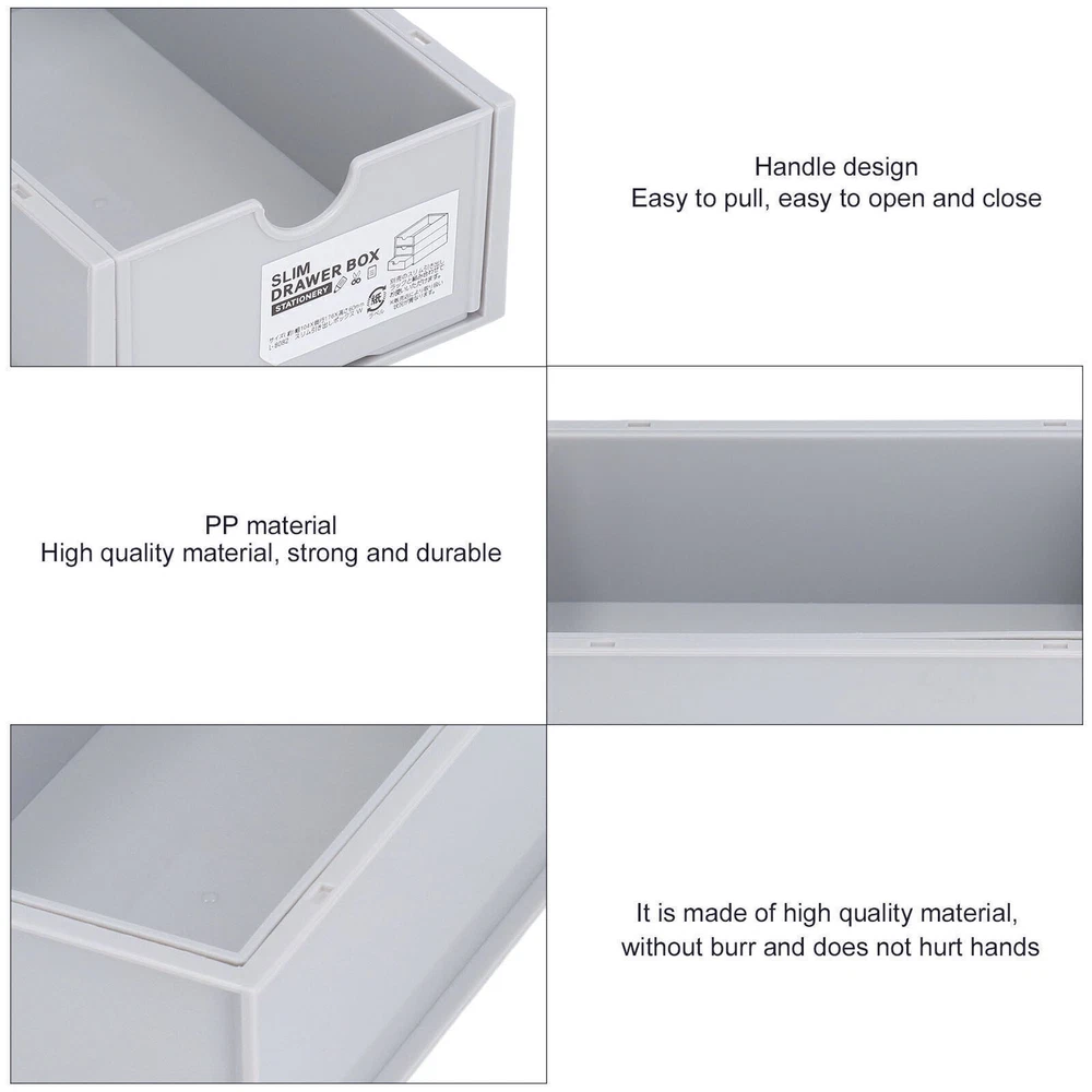 Feature: 1. Strong and Durable: Round , strong and durable, made of high‑quality materials, without burrs and without hurting hands 2. Place Items: Stacking combination, second variable finishing rack, stacking height, combined use, more items can be placed 3. PP Material: High quality PP material, PP material is strong and durable, handle design, easy to pull, storage box design handle, easy to pull 4. Large Capacity Storage: Large capacity storage, which can store common desktop small objects and save desktop space 5. Classified Storage: Classified storage, sundries and small objects, classified storage, multi scene application, bath supplies, office supplies, etc Specification: Item Type: Storage Box Material: PP Size: Approx. 18.3 x 11.2 x 6.3cm / 7.2 x 4.4 x 2.5in Package List: 1 x Storage Box Shell 1 x Storage Box Drawer Note: Please allow 0 to 2 cm error due to manual measurement. Thanks for your understanding.