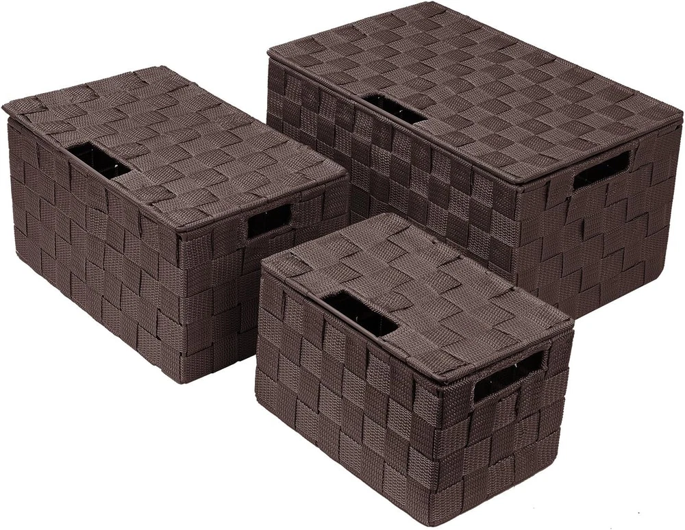 Size: Lid Bins - 3 Pack Type: Does not apply Recommended Uses For Product: Utility Item Weight: 1 pounds Special Features: stackable, lockable, Stackable, shatterproof, portable, lightweig Item Length: Does not apply Pattern: Solid Item Width: Does not apply With Lid: Yes Number of Pieces: 3 Color: Chocolate Room Type: Bathroom,Bedroom,Family Room,Kitchen,Laundry,Office Batteries Required?: No Item Height: Does not apply Special Feature: stackable, lockable, Stackable, shatterproof, portable, lightweig Item model number: WEV2-CHOA Part Number: WEV2-CHOA Shape: Rectangular Style: storage-bin Finish: Stainless steel Item Package Quantity: 1 Material: Hand-Woven Closure Type: Strap,Ties,Lid,Shelving Product Dimensions: 8.75"D x 1.5"W x 6.87"H Is Discontinued By Manufacturer: No Brand: Does not apply gtin13: 744759050922 Finish Type: Stainless steel UPC: 744759050922 Handle Material: Cotton Batteries Included?: No