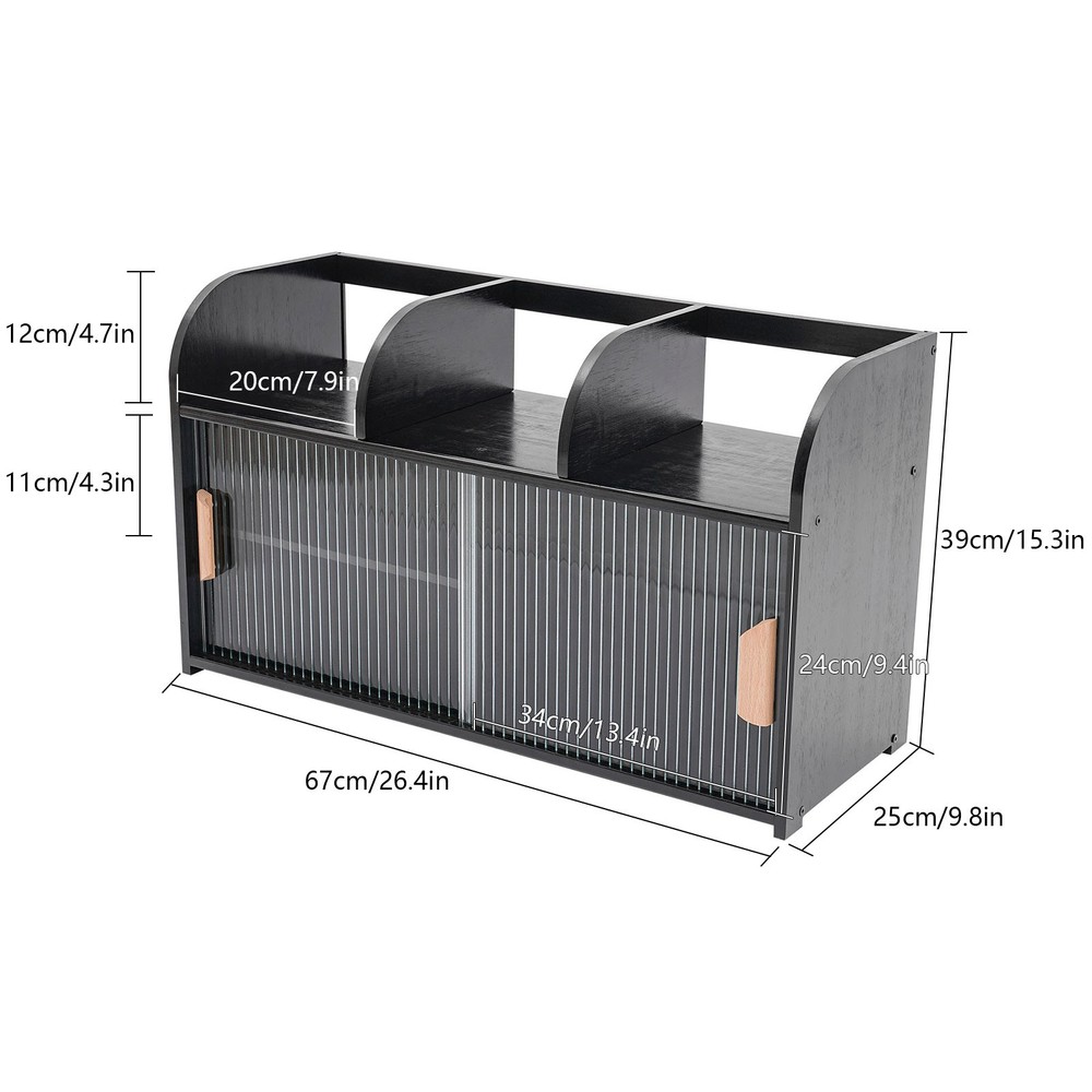 Specifications Material: Natural Bamboo, MDF, Wood, Acrylic Process: Varnish Style: Modern Color: Black Mount Type: Freestanding Shape: Rectangular Assembly Required: Yes Number of Compartments: 6 Each Tier Load Capacity: About 10-15kg/22.05-33.07lbs Adjustable Laminate Height: ±7cm/2.76in Overall Product Size: 67*25*39cm/26.4*9.8*15.3in Package Included 1* Storage Cabinet All Accessories for Assembly Storage Cabinet, Living Room Storage Cabinet, Black Storage Cabinet 67*25*39cm Description Are you still struggling with the constant inability to make good use of space? The storage cabinet can effectively solve the problem of insufficient space. You can store it in places such as the kitchen, living room, or bathroom. This product adopts the push-pull type door opening method, which is more convenient to open and close. It is indeed an excellent choice for home storage. Key Features Made to Last: It is made of natural bamboo, MDF, acrylic and wood through the varnish process, non-toxic and eco-friendly , anti-drop and anti-pressure , which can be used for a long time. High Load-Bearing Capacity: The sturdy construction and thickened plates allow each tier to hold up to approximately 22.05-33.07lbs without collapsing, allowing you to use it with confidence. Adjustable Design: You can easily adjust the height of the laminate (±2.76 inches) to accommodate items of different heights. Storage Assistant: The top tier has an open design, allowing you to see what's stored at a glance, making it easy to access what you need. The lower tier comes with cabinet doors that effectively keep out dust and make the room look neater. You can also place some small potted plant, cosmetics and other household items (not included) on the top platform to create a cozy home atmosphere. Space-saving: It saves space by making full use of vertical space and sliding door design. It only needs to be placed in small corners of kitchens, living rooms, bedrooms and bathrooms without taking up too much space. Easy Installation: The simple structure of the product and the complete set of mounting parts make it possible for even a novice to complete the installation quickly and accurately. Fashion Appearance: The storage cabinet adopts a black color, which is simple, elegant, and very fashionable. Not only is it modern style, but it can also decorate the house. Hassle-free Cleaning: The storage cabinet is detachable, making cleaning more convenient. And the acrylic material can be wiped with water, which is very convenient. Quality Service: We are honored that you have chosen our product. We have sufficient confidence in the quality of the product so that you can buy it confidently. But if you have any questions, you can contact our customer service, he will patiently answer and solve your problems. Details Smooth Edges: The edges are finely treated to provide a comfortable and safer touch. Translucent Cabinet Door: It makes the placed items visible and allows you to find the items quickly. Practical Handles: They allow you to push and pull the cabinet doors smoothly, conforming to the curvature of the human hand for an easier grip. Application This product can be used in bedroom, kitchen, living room, study room, dressing room, beauty store, etc. It can neatly store dishes, spices, books, office supplies, snacks, daily necessities and so on. Specifications Material: Natural Bamboo, MDF, Wood , Acrylic Process: Varnish Style: Modern Color: Black Mount Type: Freestanding Shape: Rectangular Assembly Required: Yes Number of Compartments: 6 Each Tier Load Capacity: About 10-15kg/22.05-33.07lbs Adjustable Laminate Height: ±7cm/2.76in Overall Product Size: 67*25*39cm/26.4*9.8*15.3in Package Included 1* Storage Cabinet All Accessories for A ssembly Notes Please note that this product does not include dishes, condiments, household items, etc. Please allow the slight color difference caused by the shooting light and 1-3cm error due to manual measurement, and make sure you do not mind before you order. Payment Delivery details Terms of sales About us Contact us Payment We accept ebay payment 。 Fees such as import duties, taxes are not included in the item price or shipping costs. These charges are the buyer's responsibility. Delivery details Shipping: 2-9 working days to: USA Terms of sales We maintain high standards of excellence and strive for hundred percent customer satisfaction. Feedback is very important to us. We hope that you contact us immediately before you give neutral or negative feedback, so that we can address your concerns. It is impossible to address issues if we do not know about them! About us Your satis faction is our ultimate goal. We work hard to earn your trust and future business. Our certified technicians have tested each item before shipping. The unit comes with 1 year limited warranty on all manufacturing defects. a) If you receive a defective item, you may return it or ask for a discount. Please contact us within 14 days after you receive the package. b) What you returned must be intact and in its original packaging as re? u. Customer is responsible for shipping costs of the returned item. c) We will cover the cost of shipping back t with the shipping rate indicated in the registration page. We will send you a new unit or refund the full payment you paid. Thank you. Contact us Business Hour Business Hour: Monday To Friday: 8:30 AM to 5:00 PM (Beijing China time) Due to time zones, our reply to your questions may not be immediately. But within above working time, we will reply your email within 24 hours. If it's non-workdays, please kindly be patient and wait till Monday. Please contact us with ebay message. Please feel free to contact us if you have any questions. Monday To Friday: 8:30 AM to 5:00 PM (Beijing China time) Due to time zones, our reply to your questions may not be immediately. But within above working time, we will reply your email within 24 hours. If it's non-workdays, please kindly be 