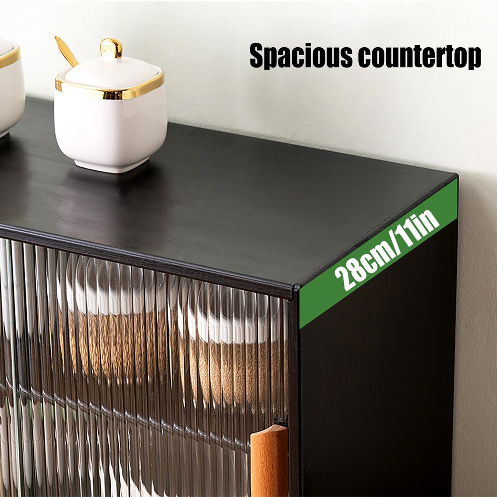 Specifications Material: Natural Bamboo, MDF, Wood, Acrylic Process: Varnish Style: Modern Color: Black Mount Type: Freestanding Shape: Rectangular Assembly Required: Yes Each Tier Load Capacity: About 10-15kg/22.05-33.07lbs Each Laminate Adjustable Height: ±7cm/2.76in Bottom Height: 10cm/3.9in Overall Product Size: 55*28*46cm/21.6*11*18.1in Package Included 1* Storage Cabinet All Accessories for Assembly Storage Cabinet, Living Room Storage Cabinet, Black Storage Cabinet 55*28*46cm Description Are you still struggling with the constant inability to make good use of space? The storage cabinet can effectively solve the problem of insufficient space. You can store it in places such as the kitchen, living room, or bathroom. This product adopts the push-pull type door opening method, which is more convenient to open and close. It is indeed an excellent choice for home storage. Key Features Made to Last: It is made of natural bamboo, MDF, acrylic and wood through the varnish process, non-toxic and eco-friendly , anti-drop and anti-pressure , which can be used for a long time. High Load-Bearing Capacity: The sturdy construction and thickened plates allow each tier to hold up to approximately 22.05-33.07lbs without collapsing, allowing you to use it with confidence. Adjustable Design: You can easily adjust the height of the laminate (±2.76 inches) to accommodate items of different heights. Storage Assistant: The lower tier has an open design, allowing you to see what's stored at a glance, making it easy to access what you need. The middle tiers come with cabinet doors that effectively keep out dust and make the room look neater. You can also place some small potted plant, cosmetics and other household items (not included) on the top platform to create a cozy home atmosphere. Space-saving: It saves space by making full use of vertical space and sliding door design. It only needs to be placed in small corners of kitchens, living rooms, bedrooms and bathrooms without taking up too much space. Easy Installation: The simple structure of the product and the complete set of mounting parts make it possible for even a novice to complete the installation quickly and accurately. Fashion Appearance: The storage cabinet adopts a black color, which is simple, elegant, and very fashionable. Not only is it modern style, but it can also decorate the house. Hassle-free Cleaning: The storage cabinet is detachable, making cleaning more convenient. And the acrylic material can be wiped with water, which is very convenient. Quality Service: We are honored that you have chosen our product. We have sufficient confidence in the quality of the product so that you can buy it confidently. But if you have any questions, you can contact our customer service, he will patiently answer and solve your problems. Details Smooth Edges: The edges are finely treated to provide a comfortable and safer touch. Translucent Cabinet Door: It makes the placed items visible and allows you to find the items quickly. Practical Handles: They allow you to push and pull the cabinet doors smoothly, conforming to the curvature of the human hand for an easier grip. Application This product can be used in bedroom, kitchen, living room, study room, dressing room, beauty store, etc. It can neatly store dishes, spices, books, office supplies, snacks, daily necessities and so on. Specifications Material: Natural Bamboo, MDF, Wood , Acrylic Process: Varnish Style: Modern Color: Black Mount Type: Freestanding Shape: Rectangular Assembly Required: Yes Each Tier Load Capacity: About 10-15kg/22.05-33.07lbs Each Laminate Adjustable Height: ±7cm/2.76in Bottom Height: 10cm/3.9in Overall Product Size: 55*28*46cm/21.6*11*18.1in Package Included 1* Storage Cabinet All Accessories for A ssembly Notes Please note that this product does not include dishes, condiments, household items, etc. Please allow the slight color difference caused by the shooting light and 1-3cm error due to manual measurement, and make sure you do not mind before you order. Payment Delivery details Terms of sales About us Contact us Payment We accept ebay payment 。 Fees such as import duties, taxes are not included in the item price or shipping costs. These charges are the buyer's responsibility. Delivery details Shipping: 2-9 working days to: USA Terms of sales We maintain high standards of excellence and strive for hundred percent customer satisfaction. Feedback is very important to us. We hope that you contact us immediately before you give neutral or negative feedback, so that we can address your concerns. It is impossible to address issues if we do not know about them! About us Your satis faction is our ultimate goal. We work hard to earn your trust and future business. Our certified technicians have tested each item before shipping. The unit comes with 1 year limited warranty on all manufacturing defects. a) If you receive a defective item, you may return it or ask for a discount. Please contact us within 14 days after you receive the package. b) What you returned must be intact and in its original packaging as re? u. Customer is responsible for shipping costs of the returned item. c) We will cover the cost of shipping back t with the shipping rate indicated in the registration page. We will send you a new unit or refund the full payment you paid. Thank you. Contact us Business Hour Business Hour: Monday To Friday: 8:30 AM to 5:00 PM (Beijing China time) Due to time zones, our reply to your questions may not be immediately. But within above working time, we will reply your email within 24 hours. If it's non-workdays, please kindly be patient and wait till Monday. Please contact us with ebay message. Please feel free to contact us if you have any questions. Monday To Friday: 8:30 AM to 5:00 PM (Beijing China time) Due to time zones, our reply to your questions may not be immediately. But within above working time, we will reply your email within 24 hours. If it's non-workdays, please
