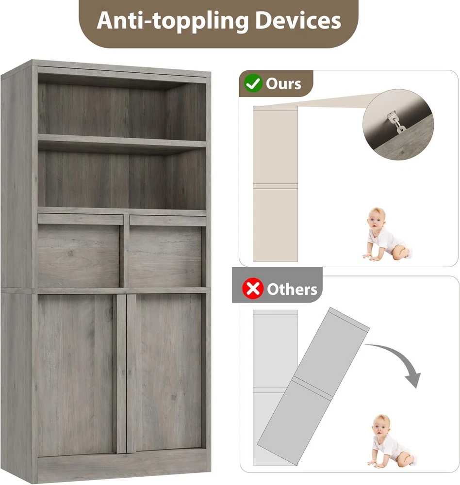 $ 167.91Tall Storage Cabinet with Glass Doors, Shelves, and Drawers