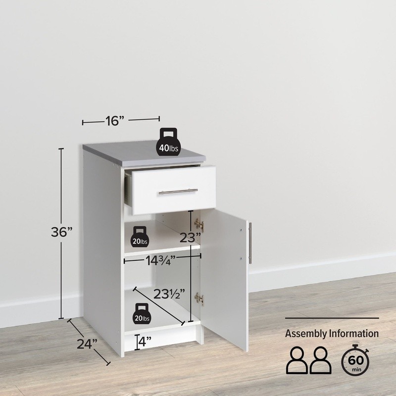 You may also like Wall Mounted 36 Inch Upper Storage Cabinet Garage Office Workshop Heavy Duty New 170.79 USD 179.78 USD Free shipping 5% off Wood Storage Cabinet Accent Cabinet W/ Doors Adjustable Shelf Indoor Organizer 161.37 USD 169.86 USD Free shipping 5% off Freestanding Storage Cabinet W/ Doors & Drawer Adjustable Shelves Organizer Home 104.25 USD 109.74 USD Free shipping 5% off 60 Inch 2 Door Storage Cabinet Adjustable Shelves Freestanding Organizer Home US 104.84 USD 110.36 USD Free shipping 5% off Freestanding Kitchen Pantry Cabinet Adjustable Shelves Easy Assembly Storage New 153.12 USD 161.18 USD Free shipping 5% off Kitchen Pantry Cabinet W/ LED Lights Power Outlets Storage Drawer & Shelves New 222.62 USD 234.34 USD Free shipping 5% off Agni Buffet Hutch Kitchen Cabinet Storage Display Shelf Wooden Furniture New 149.18 USD 157.03 USD Free shipping 5% off 4-Door Kitchen Pantry Adjustable Shelves Storage Cabinet Freestanding Organizer 139.23 USD 146.56 USD Free shipping 5% off 2-Tier Under Cabinet Storage Tower Pullout Drawer Organizer W/ Hanging Bin Clips 27.37 USD 28.81 USD Free shipping 5% off 3 Drawer Lockable Office Cabinet Storage Walnut Black Melamine Furniture New 62.93 USD 66.24 USD Free shipping 5% off Tall Kitchen Cabinet W/ Open Shelves Microwave Space Storage Drawer Organizer US 150.91 USD Free shipping Narrow Storage Cabinet Adjustable Shelves Media Organizer DVD CD Books Display 92.65 USD 97.53 USD Free shipping 5% off The Elite Base Cabinet is not just another garage cabinet. It offers a versatile storage solution that works seamlessly as a pantry storage cabinet, garage storage cabinets, office storage cabinet, or even as a small bathroom cabinet. Its spacious interior with adjustable shelves ensures it fits diverse needs from bathroom organizers and storage to kitchen storage cabinets. Constructed from safe, non-toxic materials, it is durable enough to serve as a freestanding unit in your bathroom, laundry room, or garage. The added strength from adjustable hinges guarantees longevity, no matter where it is installed, making it a remarkable asset either as kitchen base cabinets or base cabinet with countertop. Its aesthetic allure spans beyond the typical small storage cabinet. The sleek brushed metal handles and elegant rounded edges make it a graceful addition, bringing a stylish touch to your kitchen cabinets, bathroom, or even a linen closet. Transform your spaces into a well-organized area with this robust unit. Whether you need a base kitchen cabinet, utility storage cabinet, a pantry cabinets with doors and shelves, or salon cabinets and storage, this cabinet's functionality is unlimited. With its robust build, it qualifies as a reliable food pantry cabinet for kitchen or bathroom storage cabinets. Its adjustable shelf is perfect for kitchen organizer use, and similarly benefits bathroom organizers and storage. Manufactured from laminated composite woods and a sturdy MDF backer, this organizer brings quality, style, and practicality to every home - be it as kitchen pantry cabinets, laundry room cabinets or garage organization cabinets. And it doesn't stop at that! Its chic minimalistic design makes it a popular choice for dorm room storage, or craft storage cabinet, providing ample storage with doors. This cabinet brings not only organization but also style to any space. ASSEMBLED DIMENSIONS & WEIGHT: Cabinet- 24" D x 16" W x 36" H, Total weight- 70 lbs. , All pieces arrive ready to assemble in 1 Box FUNCTIONAL AND STYLISH: Storage cabinet with doors and shelves boasts clean lines and soft-edge doors with brushed metal pull handles all in a clean white finish DURABLE MATERIAL FOR LONG TERM USE: Laundry room cabinet is constructed from non-toxic (CARB 2 Compliant), laminated composite woods with a sturdy medium-density fiberboard backer for added strength- bathroom storage cabinet is easy to clean, water-proof and environmentally friendly COUNTERTOP CABINET: The 1" thick gray melamine countertop surface provides a convenient working and storage space, making this base cabinet with countertop ideal for kitchens, bathrooms, garages, and more EASY TO ASSEMBLE: Base cabinet includes detailed, step-by-step instructions; all necessary parts- the cabinet for storage with drawers can typically be assembled in 1 hour or less with basic hand tools by 2 people MADE IN NORTH AMERICA: furniture products are proudly made in North America for trusted quality reliability and backed by our knowledgeable North America based customer support team PART OF THE ELITE STORAGE CABINET COLLECTION: Whether you're looking for one cabinet or an entire storage cabinet set, the Elite collection has multiple options in both upper and lower cabinets. With its robust build, Elite Cabinets work perfectly as bathroom decor, kitchen storage, garage organization, pantry or linen cabinets. Bathroom Sink Hair Catcher Stainless Steel Drain Protector Universal Fit 1 Pack 18.75 USD 19.74 USD Free shipping 5% off Coconut Clumping Cat Litter 2 Pack All Natural Lightweight Odor Control 8.5 lbs 44.97 USD 47.34 USD Free shipping 5% off 4.00-6 Wheelbarrow Tire All-Terrain Utility Non-Radial Load A Durable Traction 25.12 USD 26.44 USD Free shipping 5% off Hanging Closet Organizer W/ 6 Shelves & 3 Side Pockets Adult Clothes Storage New 27.29 USD 28.73 USD Free shipping 5% off Self Adhesive Shelf Liner Gridded Back Easy Peel No Residue 2 Pack 30 SQ FT New 13.15 USD 13.84 USD Free shipping 5% off 8in Wheel Replacement Walk-Behind Mowers Troy-Bilt Snapper Yard Machine Murray 29.3 USD 30.84 USD Free shipping 5% off Bermudagrass Grass Seed Mix Full Sun Fast Establishment Drought Tolerant 8.75 lb 48.49 USD 51.04 USD Free shipping 5% off Extreme Odor Control Small Animal Bedding 99% Dust Free Absorbent Nesting New 17.38 USD 18.29 USD Free shipping 5% off Programmable 1 Zone Water Timer Automatic Garden Irrigation Flow Control System 44.37 USD 46.71 USD Free shipping 5% off Allergen Defense HVAC Air Filter 800 