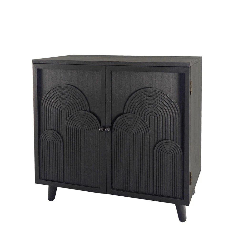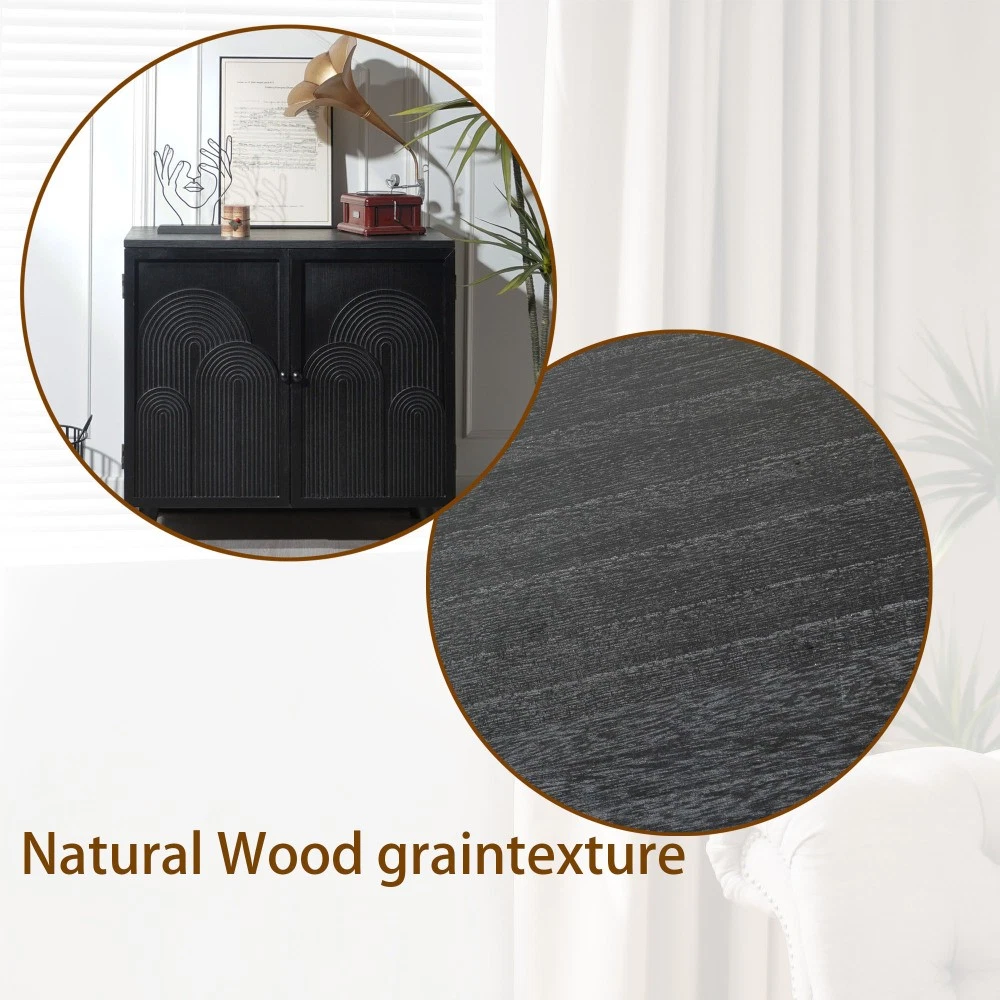 Modern Black Wood Storage Cabinet, 31in Accent Cabinet with Embossed Door for Living Room/Bedroom/Entryway Add both style and functionality to your home with our Modern Black Wood Storage Cabinet—your perfect solution for organized, elegant storage in any space! This 31-inch accent cabinet features a sleek black finish, unique embossed door design, and durable construction, making it a versatile addition to your living room, bedroom, entryway, or any area in need of extra storage and decorative flair. Key Product Details Origin: China Color: Classic Black (Timeless Finish for Any Decor) Material: High-Quality Engineered Wood & MDF Tabletop Weight Limit: 100 lbs Inner Shelf Weight Limit: 30 lbs Customization Service: Available! Please contact the Seller for detailed information about customization options. Assembly Required: Yes (Easy Setup with Included Instructions) Product Dimensions (Assembled) Length (Width): 31.00 inches Width (Depth): 15.00 inches Height: 31.70 inches Product Weight: 47.60 lbs Packaging Dimensions Length: 33.50 inches Width: 7.90 inches Height: 32.70 inches Packaging Weight: 52.00 lbs Why This Storage Cabinet Stands Out 📦 Spacious & Practical Storage Equipped with two interior shelves, this cabinet offers ample space to organize your belongings—11.8 inches for the upper shelf and 13 inches for the lower shelf. Perfect for storing books, decor items, electronics, linens, shoes, or personal essentials, keeping your space clutter-free while keeping items within easy reach. 📏 Compact & Versatile Size Measuring 31in (W) x 15in (D) x 31.70in (H), this cabinet is designed to fit seamlessly into both small and large spaces. Its compact profile doesn’t compromise on storage, making it ideal for apartments, condos, or houses—no more sacrificing style for functionality! 🎨 Unique Embossed Decorative Design Elevate your home decor with the cabinet’s modern geometric embossed patterns on the door. This distinctive detail adds an elegant, sophisticated touch, turning a simple storage cabinet into a statement accent piece that complements any modern, contemporary, or minimalist interior style. 💪 Durable & Stable Construction Crafted from high-quality engineered wood and MDF, this cabinet is built to last. It features strong solid wood legs (4.7 inches in height) that provide exceptional stability, ensuring the cabinet stays sturdy even when fully loaded. With a 100-lb tabletop weight limit and 30-lb inner shelf weight limit, it’s designed to handle your daily storage needs. 🏠 Versatile Placement Options This multi-functional cabinet is more than just storage—it can be used as an accent cabinet, sideboard, nightstand, or entryway storage unit. Place it in your living room to hold decor and media items, in your bedroom as a stylish nightstand, or in your entryway to store shoes and keys—its versatility fits all your needs. 🔧 Easy Assembly No need for professional help! The cabinet comes with simple, clear instructions, making assembly hassle-free. You’ll have your new storage cabinet set up and ready to use in no time. Our Commitment to You ✅ 1-Year Quality Guarantee: We stand behind the craftsmanship of our storage cabinet. Enjoy a 1-year warranty against manufacturing defects, giving you peace of mind with your purchase. ✅ 30-Day Free Return & Exchange: Not completely satisfied with your cabinet? We offer a 30-day free return and exchange policy—shop with confidence, risk-free! Upgrade your home with this stylish, durable, and versatile storage cabinet that combines functionality with decorative charm. Plus, with customization available and our worry-free after-sales service, it’s the perfect addition to your space. Add to cart today!