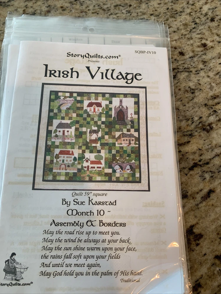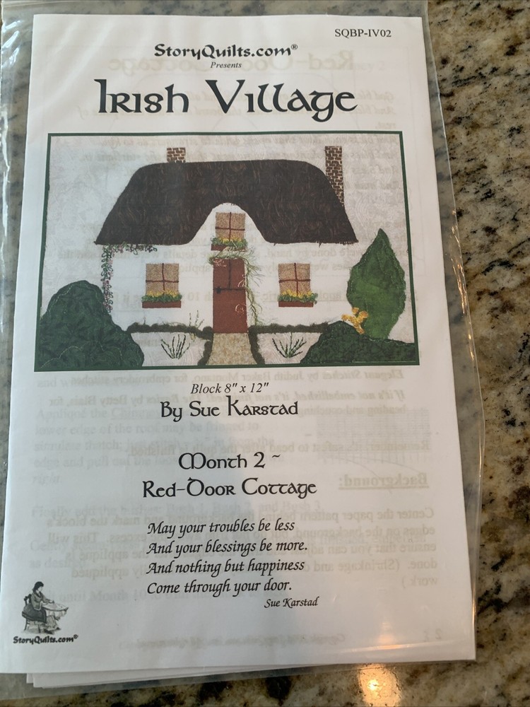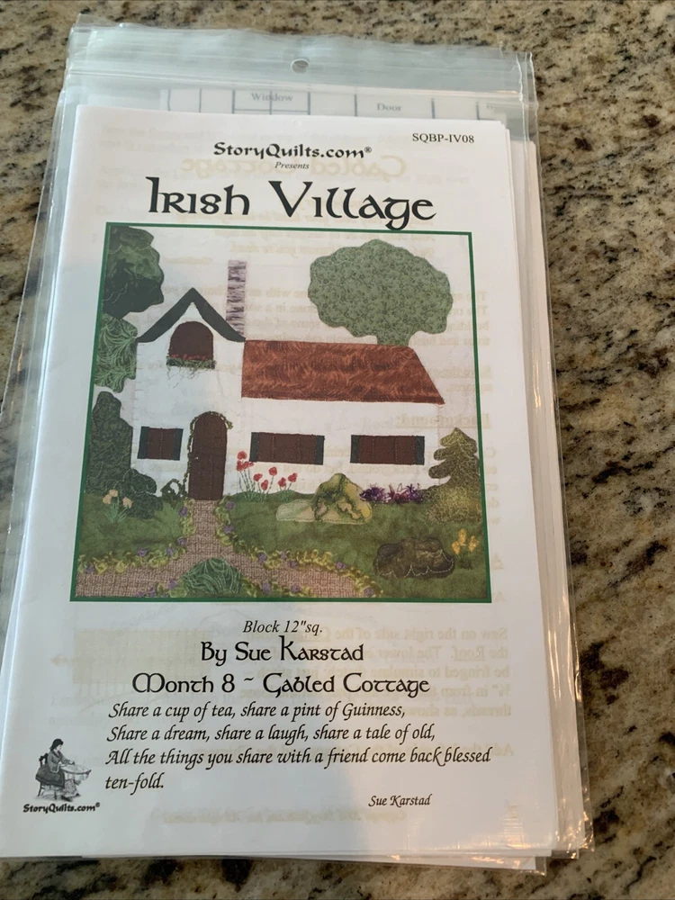 Story Quilts Irish Village St Of Ten Patterns For Appliquéd Quilt 8”x12” blocks Bridge to the village Red-door cottage Church Willow cottage Village well Ancient cottage Two-story cottage Gabled cottage Bridge from the village The last packet is for assembly and the borders.