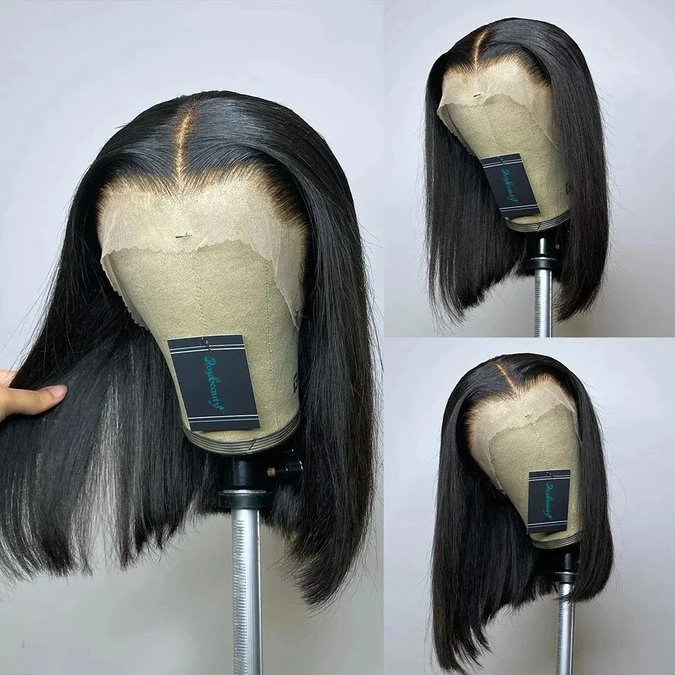 $ 129.275x5 Glueless Lace Front Bob Wig Preplucked Human Hair Short Straight