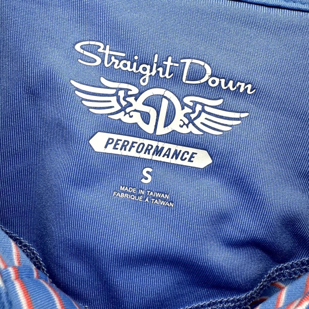 Brand: Straight Down Size Type: Regular Neckline: Collared Garment Care: Machine Washable Seller Notes: “Very good condition, see all pictures for views.” Accents: Logo Performance/Activity: Golf Department: Men Pattern: Striped Size: S Material: Polyester, Spandex Color: Blue