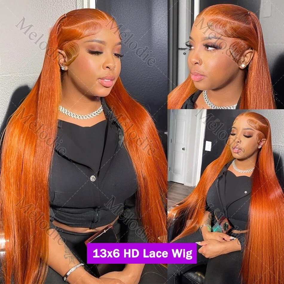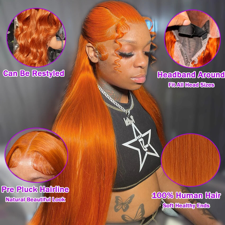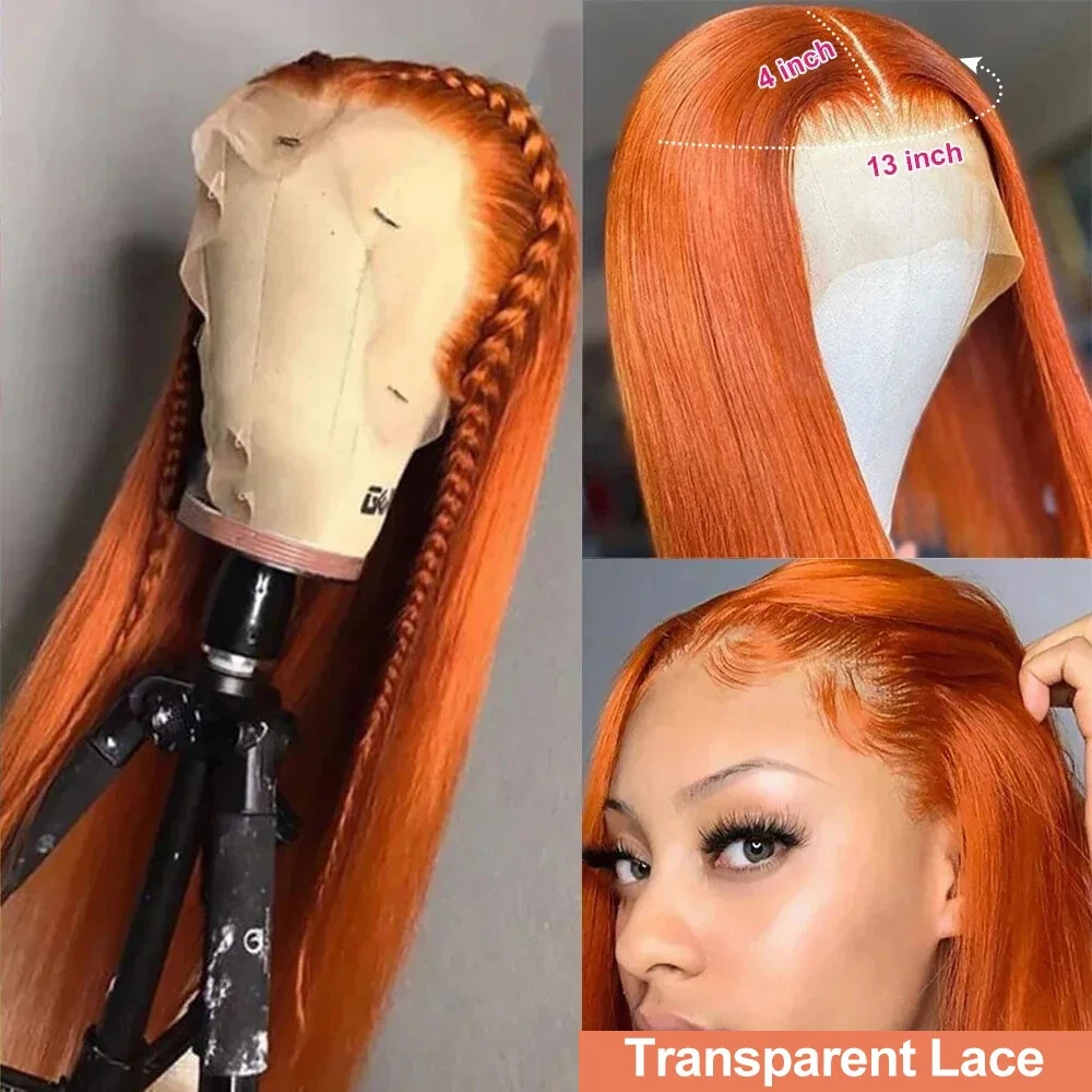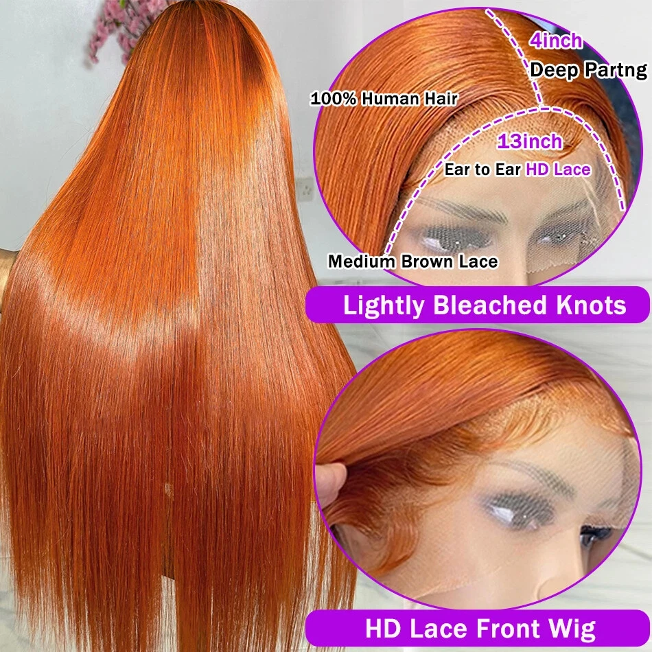 Straight Ginger Orange HD Lace Front Wig 13x6 13x4 Preplucked Human Hair for Women